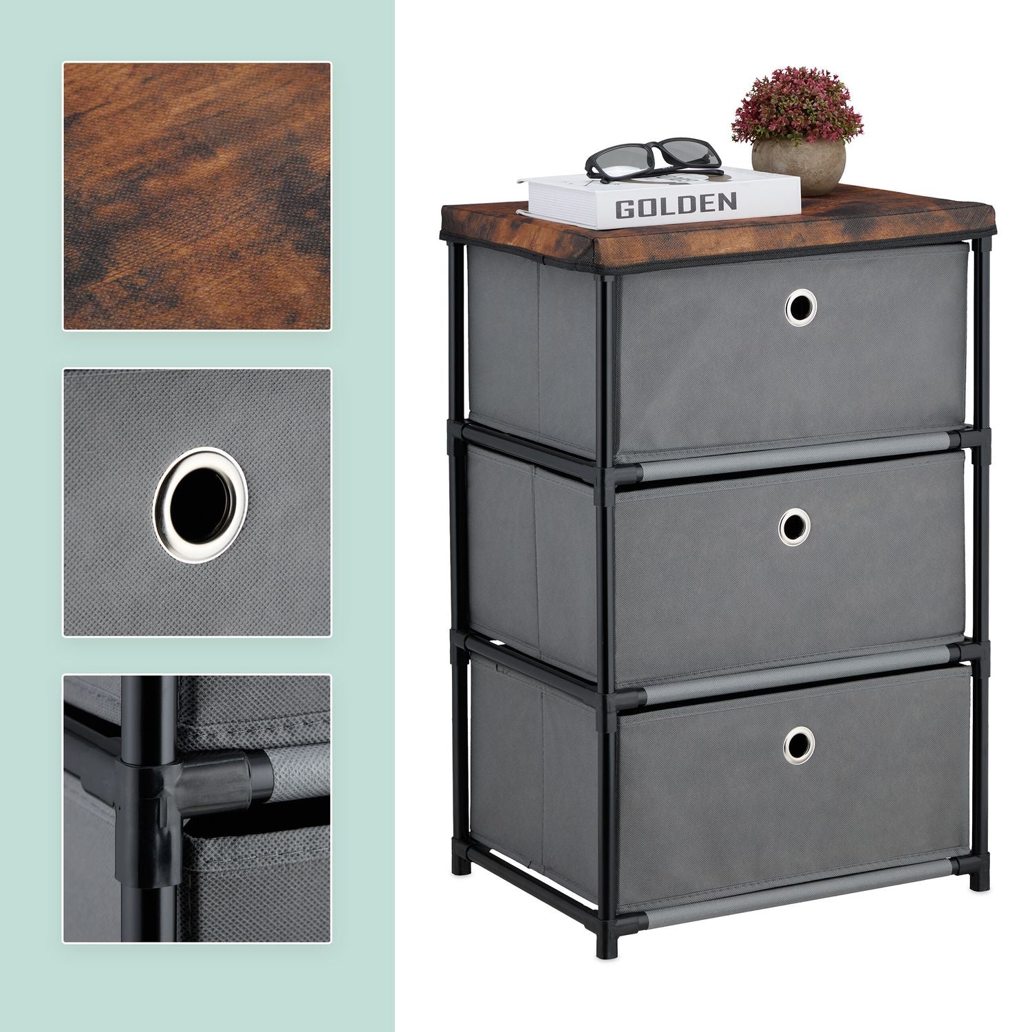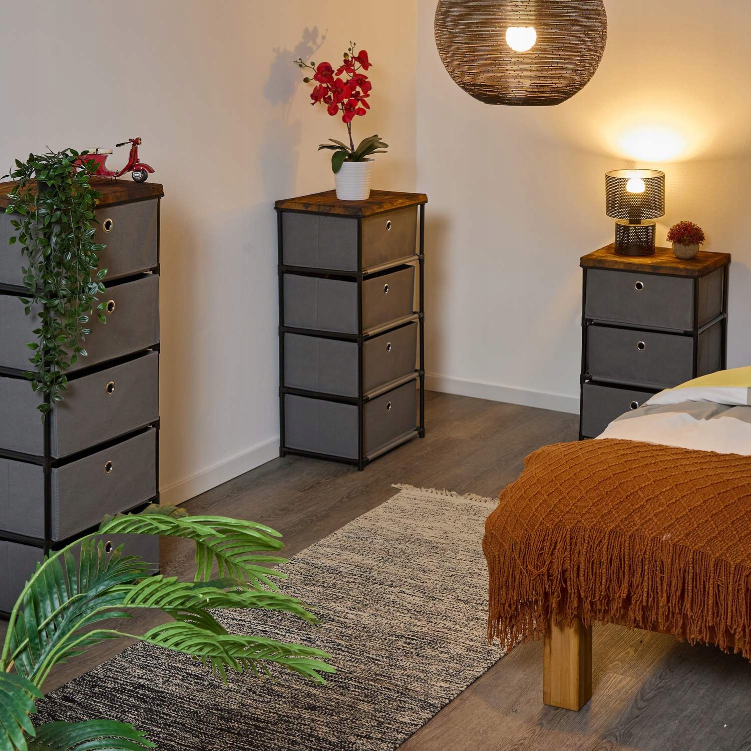 Sidoskåp med lådor має вражаючий промисловий дизайн із елегантною чорною металевою рамою, яка доповнює будь-який сучасний інтер’єр. Полиця з вінтажним дерев’яним виглядом додає тепла та характеру, що робить її ідеальною як для сучасного, так і для сільського інтер’єру. Тканинні шухляди не тільки покращують естетику, але й м’які на дотик, що полегшує зберігання та доступ до речей.