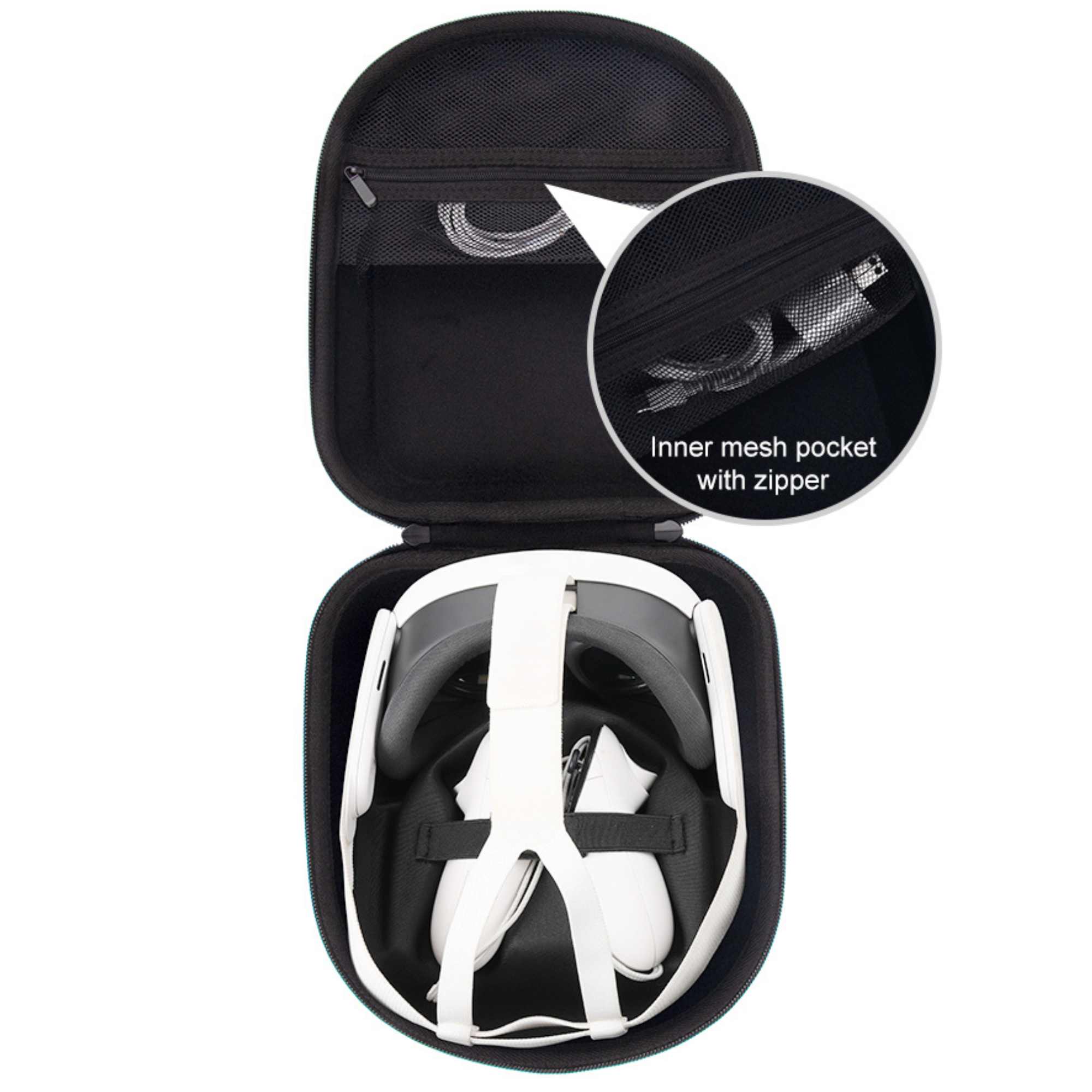 Чохол має подвійну застібку-блискавку та ручку, що значно полегшить перенесення окулярів на роботу, школу або вечірку. Зовнішня оболонка виготовлена з міцного матеріалу EVA, який стійкий до ударів і пошкоджень матеріалу.
