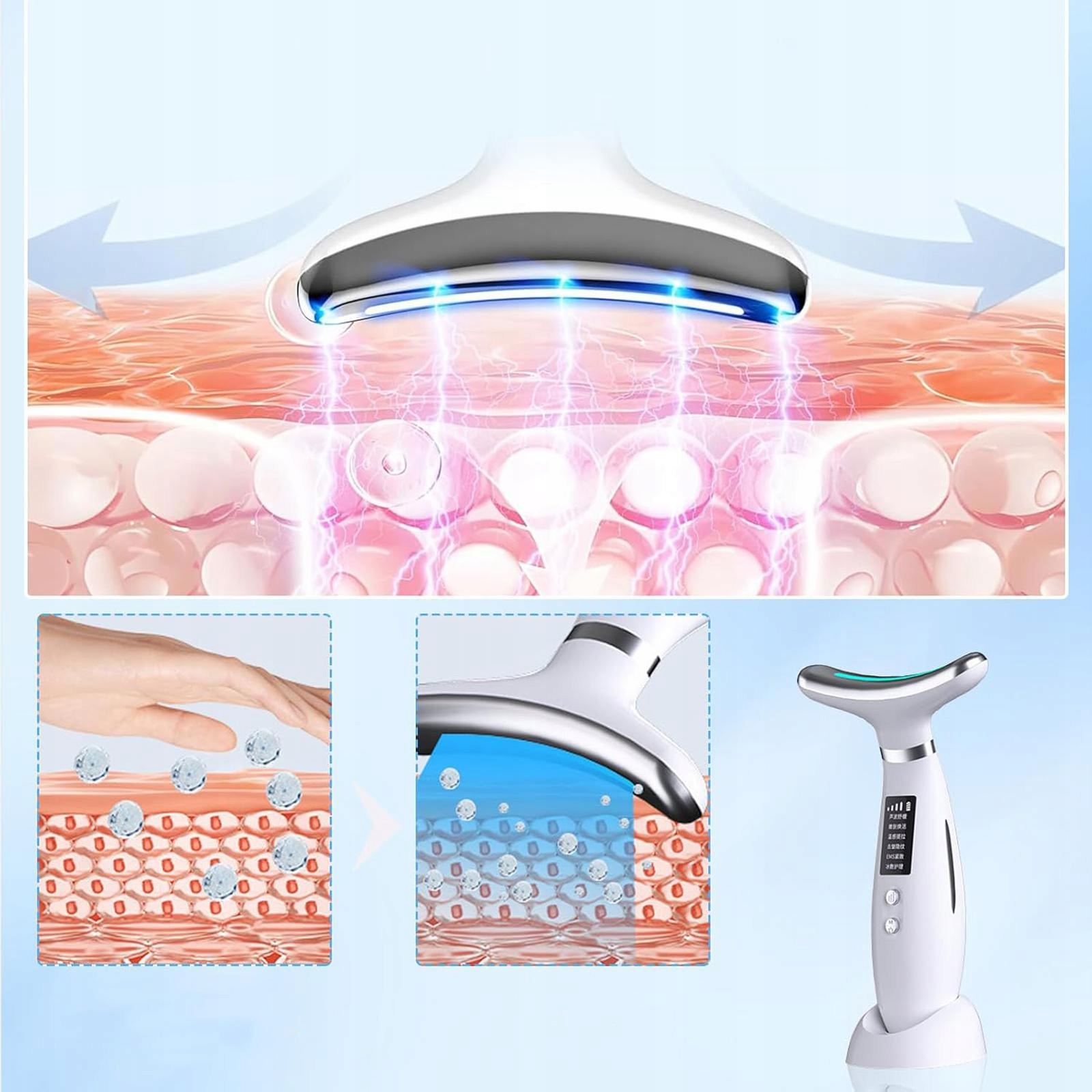 🌟 Розумна постійна температура 45°C: цей елегантний підйомний масажний пристрій може нагріватися до постійної температури 45°C за лічені секунди. У поєднанні з EMS-масажем і світлотерапією це допомагає збільшити поглинання засобів догляду за шкірою, зменшити зморшки та покращити нерівний тон шкіри. Використання разом із зміцнюючим гелем або кремом може забезпечити гладку та пружну шкіру, затримати старіння та видалити забруднення. 🔥