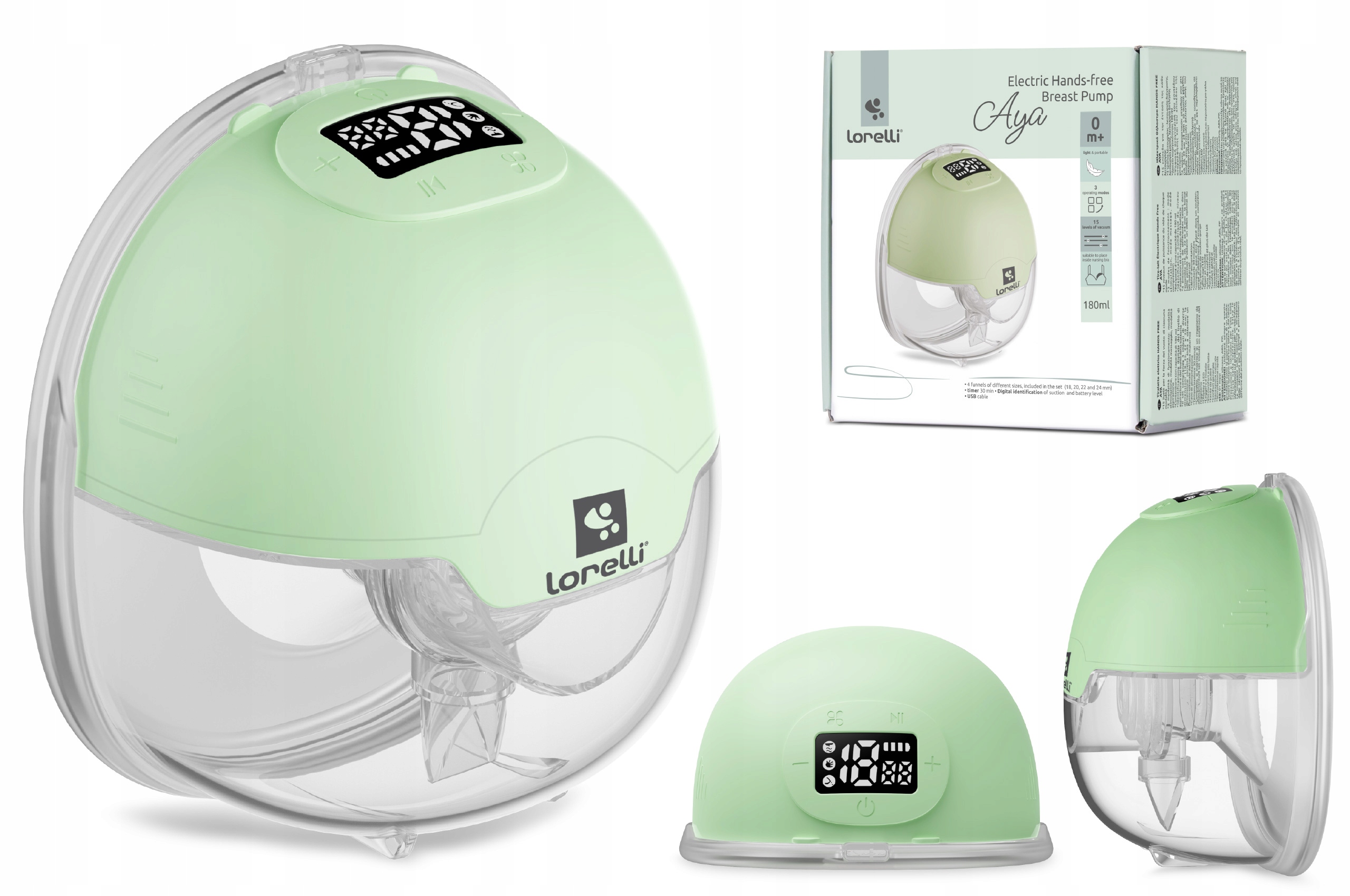 Lorelli Aya - це сучасний бездротовий молоковідсмоктувач без рук, який дозволяє комфортно та непомітно зціджувати молоко навіть під час щоденних обов’язків. Завдяки 15 рівням потужності та 3 режимам роботи забезпечує природні відчуття та ефективну стимуляцію лактації. Компактний дизайн дозволяє носити його в бюстгальтері, а ємність 180 мл і лійки 4 різних розмірів гарантують ідеальну посадку. Інтуїтивно зрозумілий світлодіодний дисплей і джерело живлення через USB роблять його надзвичайно практичним удома та в дорозі.