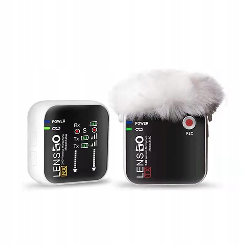 Бездротовий мікрофон Lensgo348c Компактна цифрова система/рекордер із додатковою кнопкою запису та вбудованим магнітним затискачем (2,4 ГГц, білий)