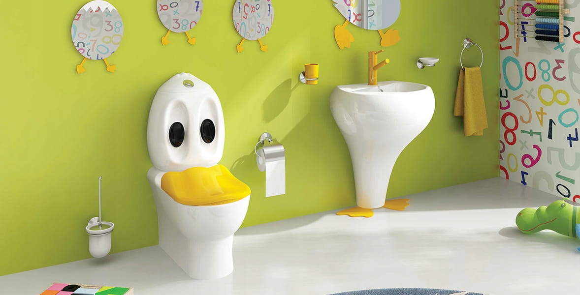 Компактний унітаз CREAVIT із жовтим сидінням DUCKY з м'яким закриттям