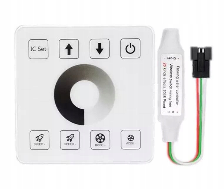 Панель бездротова, підключіть V+ і V- від світлодіодної стрічки до блоку живлення та підключіть контролер до PIN-штекера на світлодіодній стрічці. (Цифрова стрічка, окрім штекера PIN-коду, має додаткові дроти, позитивні та негативні.)