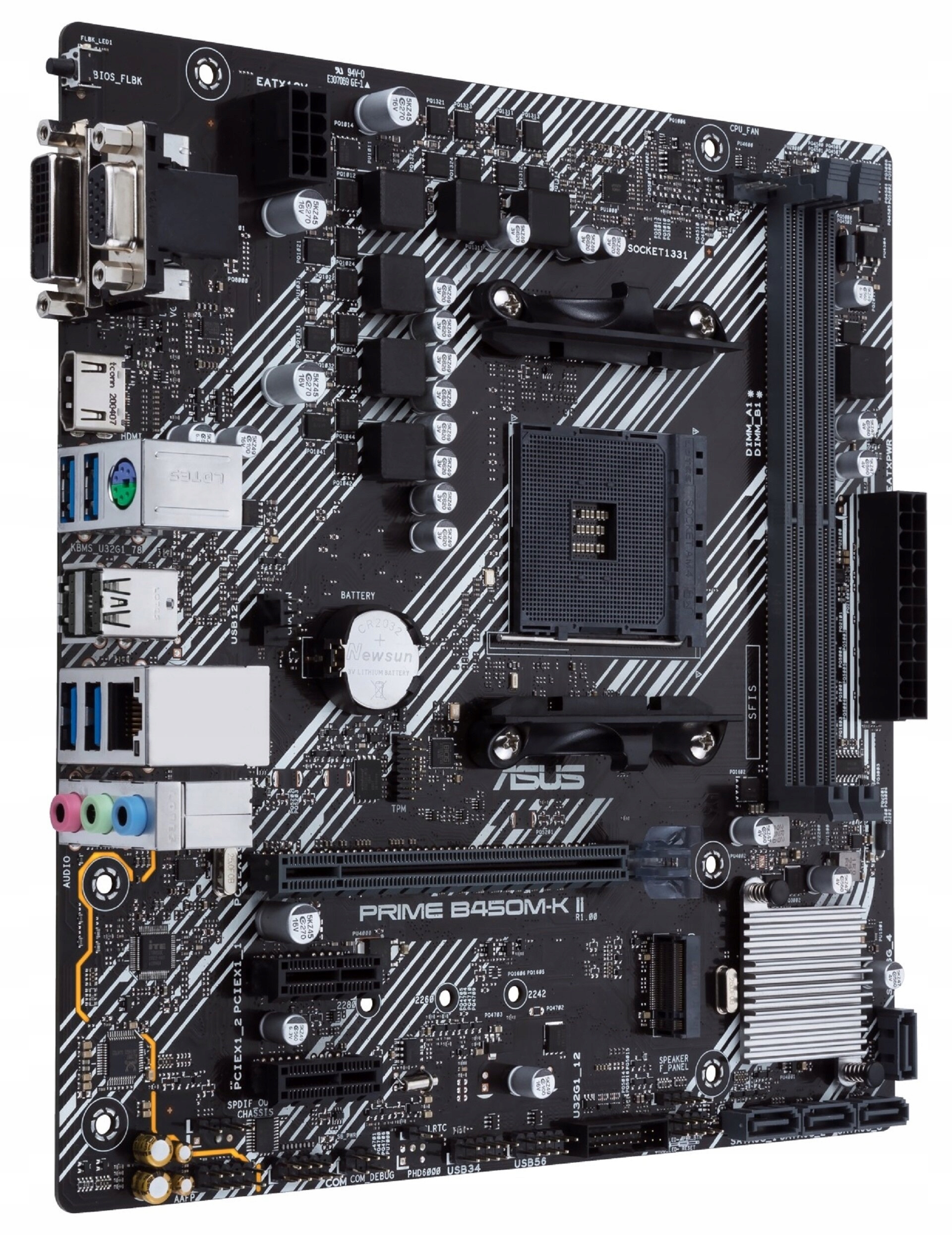 - Материнська плата AMD B450 ASUS PRIME з M .2, HDMI/DVI-D/D-Sub, SATA 6 Гбіт/с, LAN 1 GbE, USB 3.2 Gen 1 Type-A, функція BIOS FlashBack™ і підтримка освітлення RGB із синхронізацією Aura