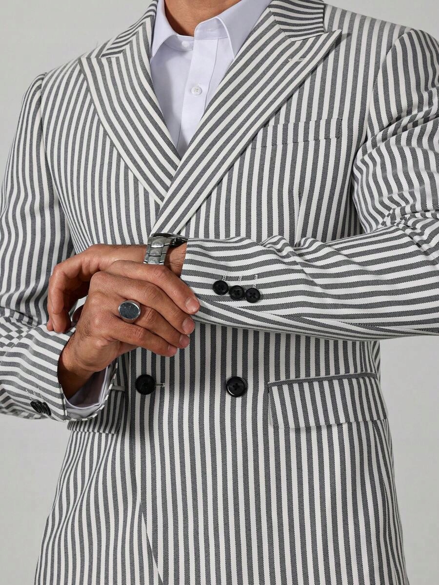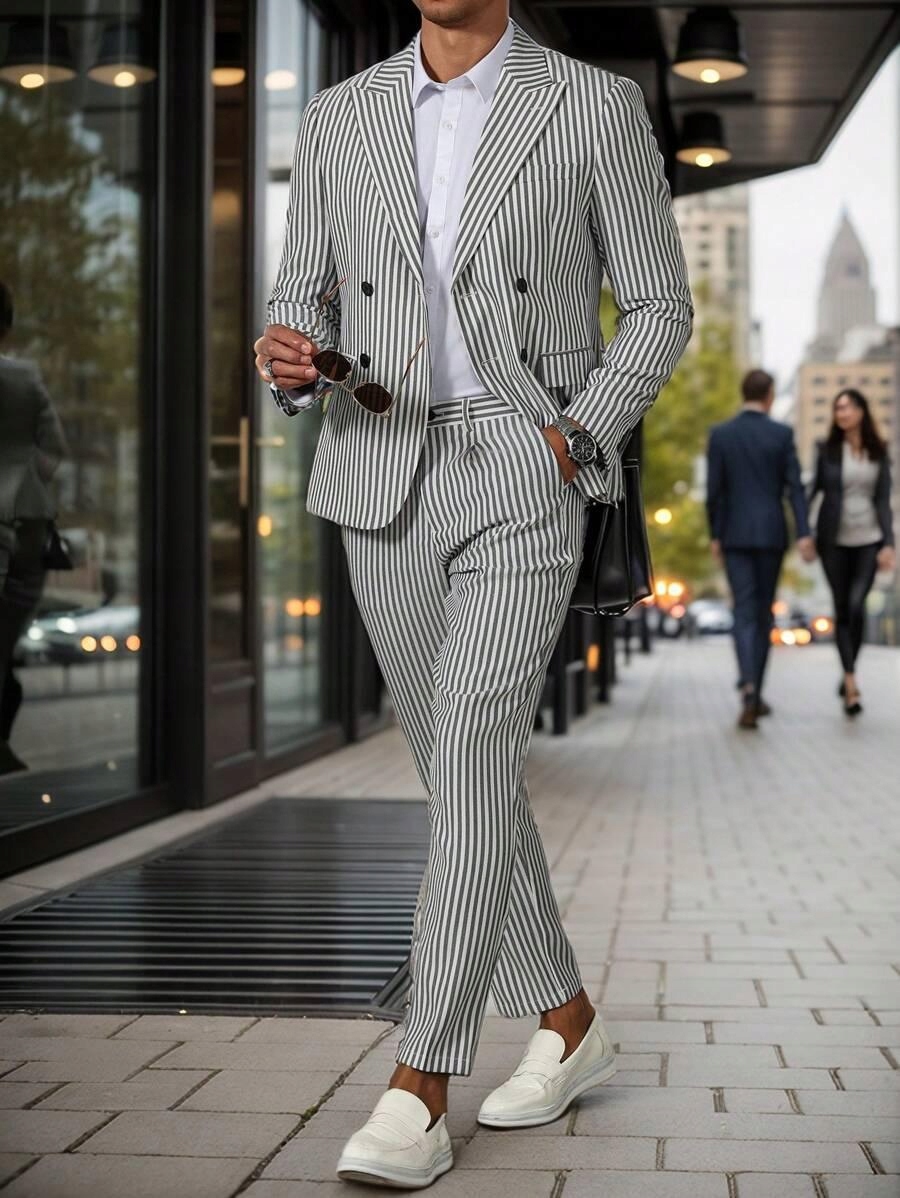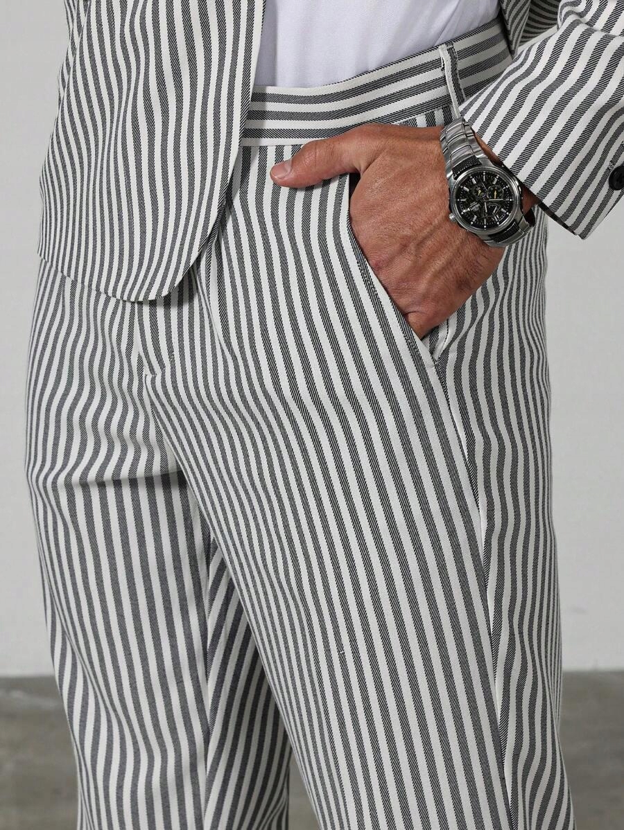 КОМПЛЕКТ БЛЕЙЗЕРІВ ДОВГІ РУКАВИ ПРЯМІ НОГИ ШТАНИ ЧОЛОВІЧНІСТЬ В СМУЖКУ M