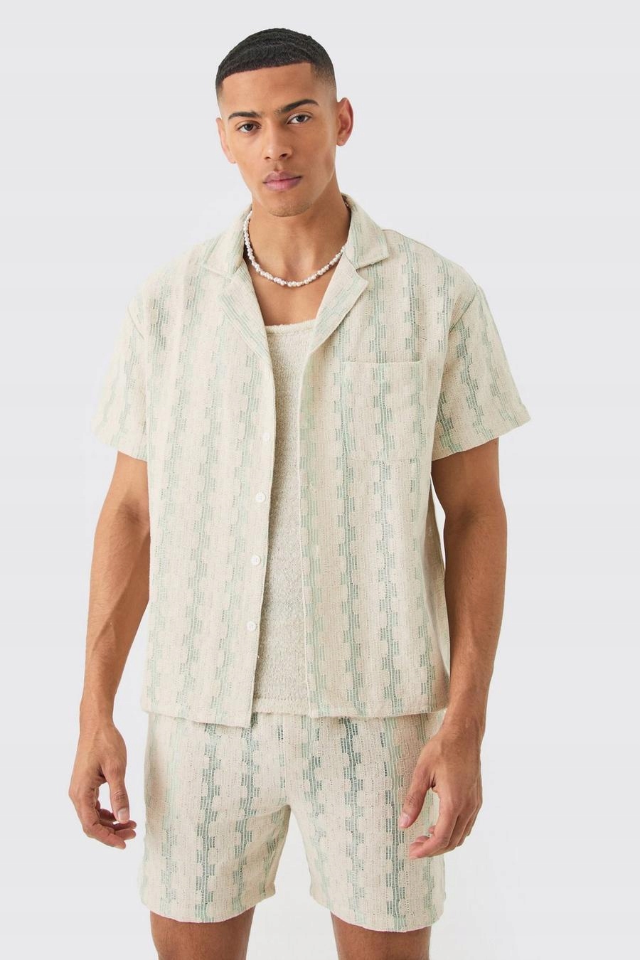 КОМПЛЕКТ BOOHOO СОРОЧКА ШОРТИ ВЗІЗЕРОК СТРУКТУРА MR0 B18__L