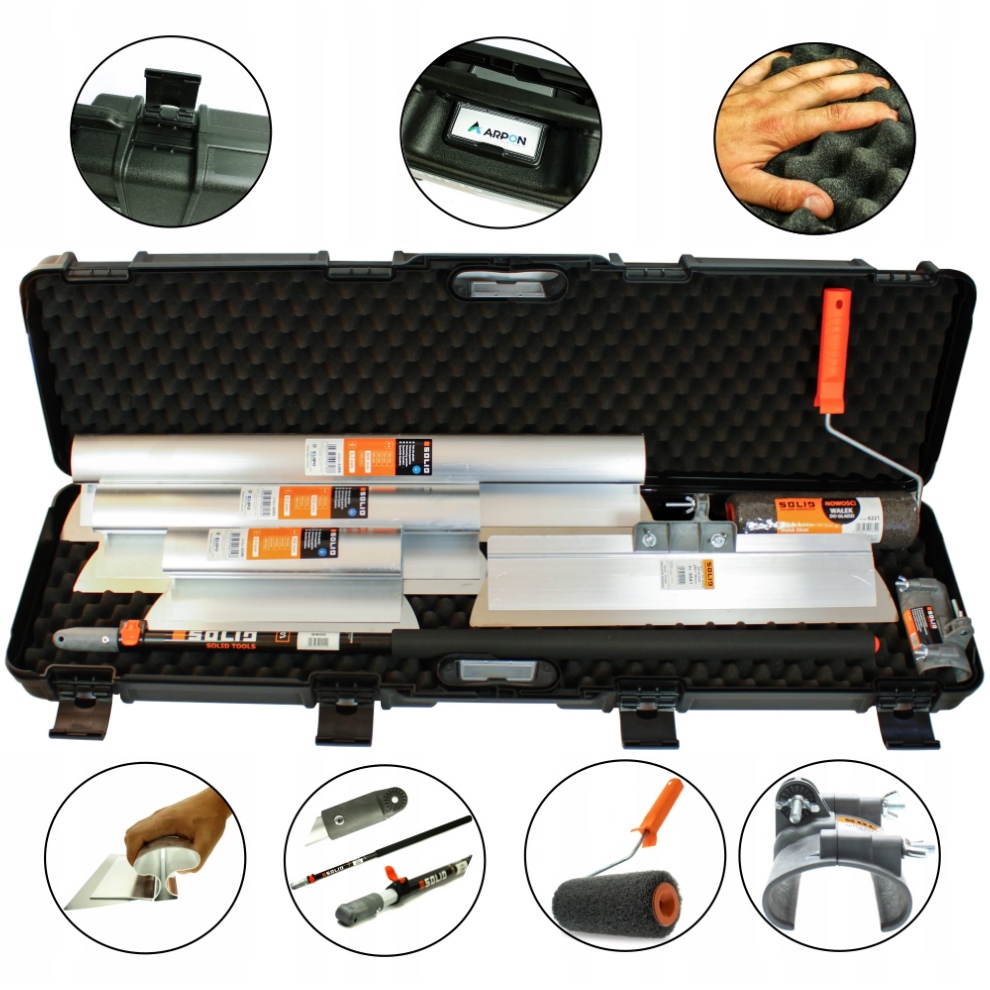 Розмір валізи 1200 x 340 x 140 мм. Адаптований до штукатурки Solid та штукатурних інструментів.