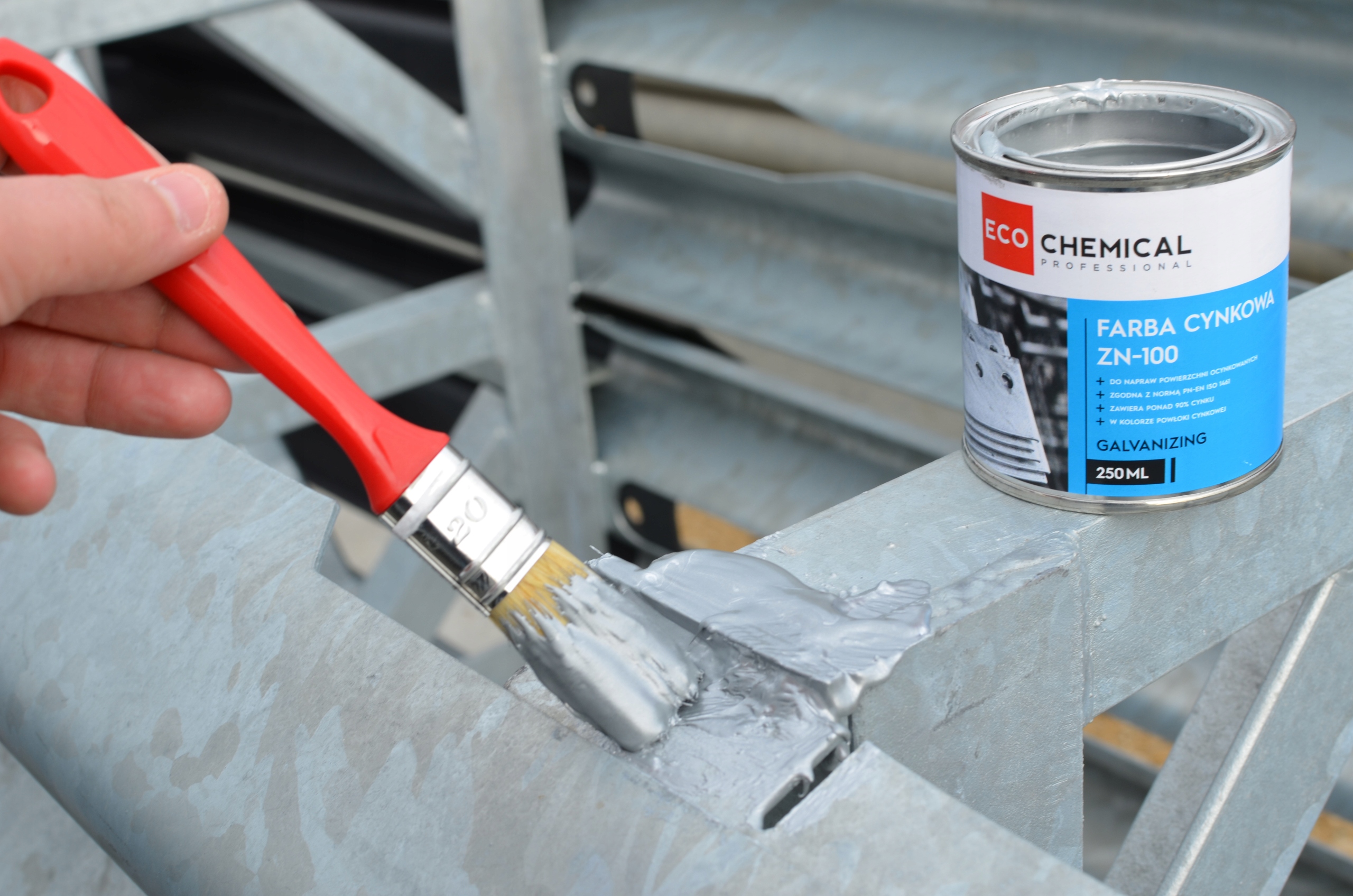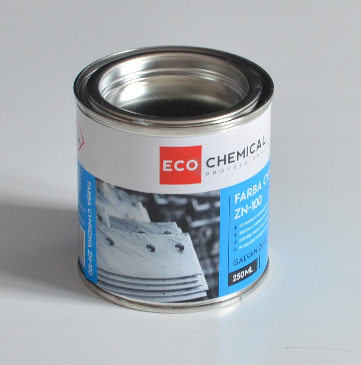 Фарба цинкова Zn 100 використовується для ремонту оцинкованих поверхонь. Містить понад 90% металевого цинкового пилу. Має відмінну стійкість до атмосферної корозії. Захисний ефект заснований на електрохімічній поведінці цинкового пилу, який окислюється першим завдяки своїй менш шляхетній структурі порівняно з залізом, тому забезпечує чудові антикорозійні властивості. Алюмінієва пігментація забезпечує цинкоподібний вигляд покриття в поєднанні з високою поверхневою щільністю сухого шару. Захист від корозії залежить від підготовки основи. Добре підготовлена основа підвищує довговічність і якість нанесеного покриття.