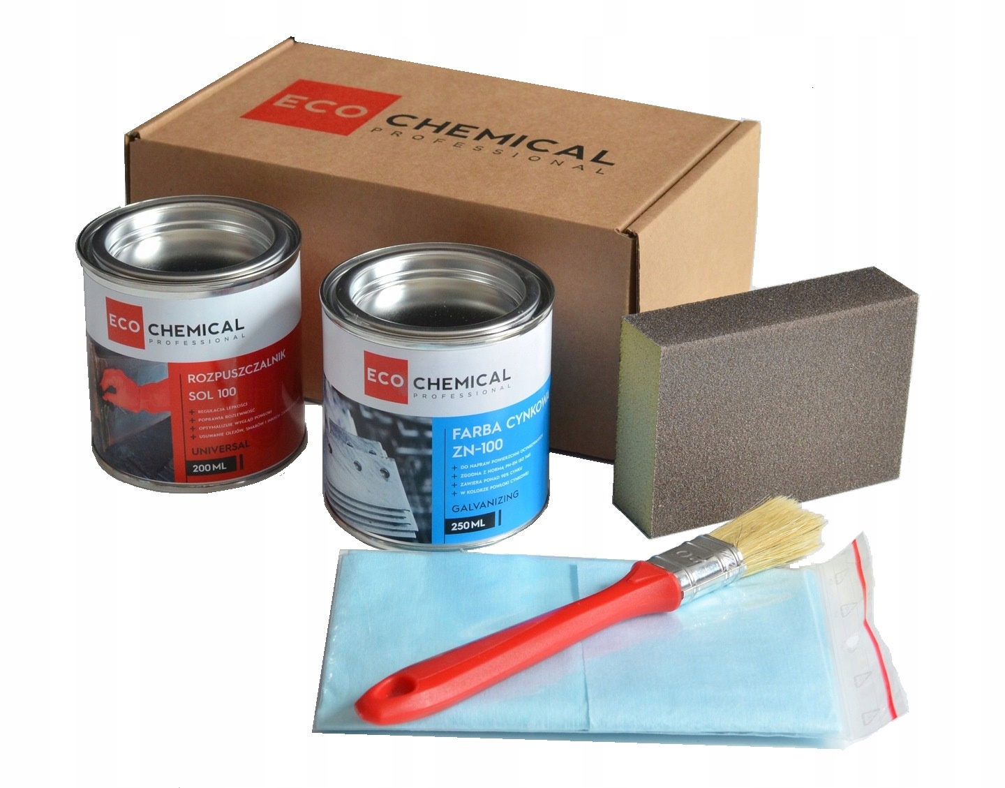 Набір для ремонту цинкового покриття Zn 100 - це пакет, що містить професійні хімічні препарати, які використовуються на заводах гальванізації та підприємствах з виробництва та монтажу металоконструкцій. Набір містить високоцинкову фарбу ZN 100, яка містить понад 90% цинкового пилу та відповідає стандарту DIN 1461, універсальний розчинник, який використовується для отримання потрібної в’язкості фарби та знежирення поверхні, абразивну губку, антистатичну тканину, шпатель та пензлем.