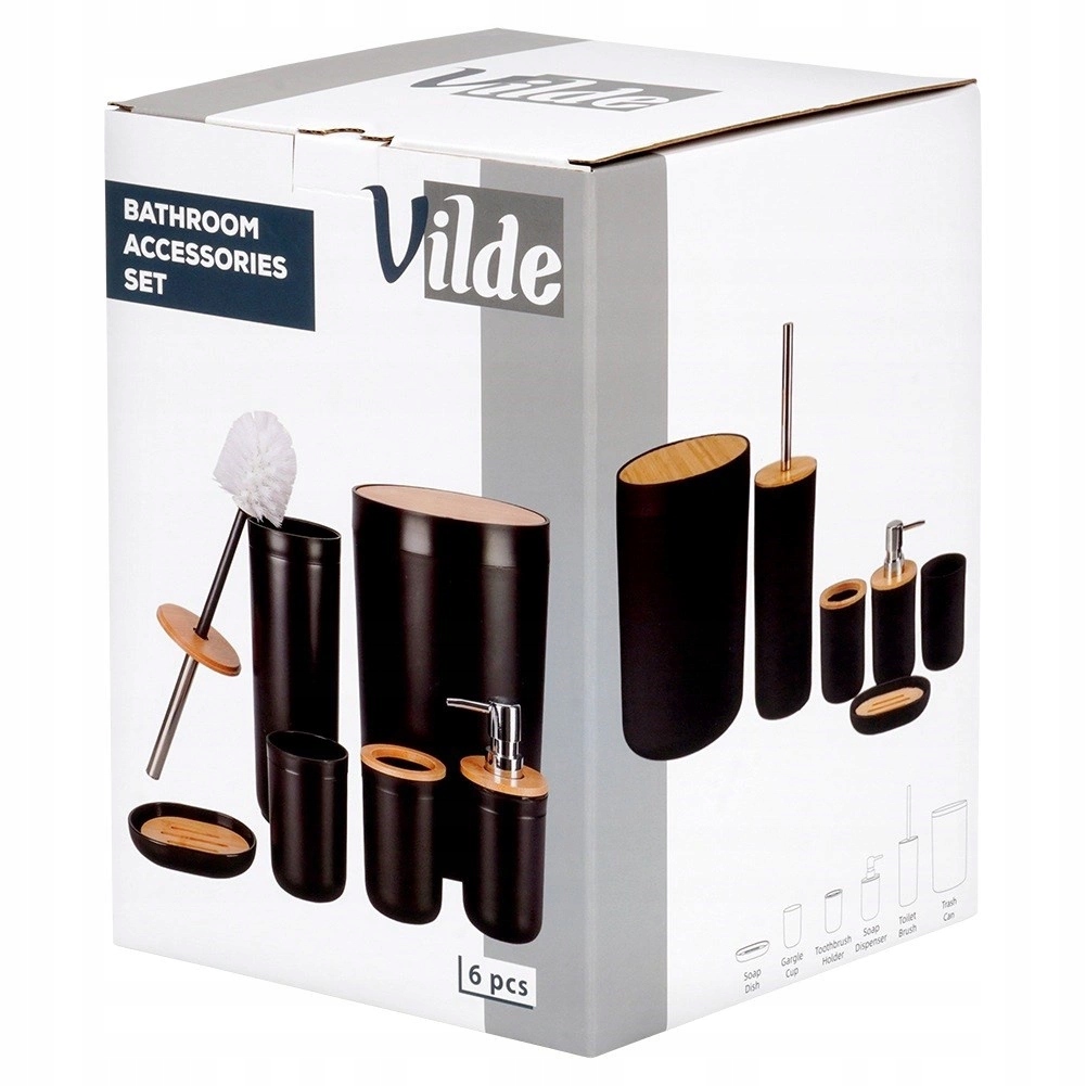 - Набір із 6 шт. аксесуари для ванної кімнати- Набір аксесуарів для ванної кімнати, що складається з: дозатора для мила, мильниці, чашки для аксесуарів, напр. зубна щітка або паста, додаткова чашка, туалетна щітка з контейнером і відро для сміття з відкидною кришкою.