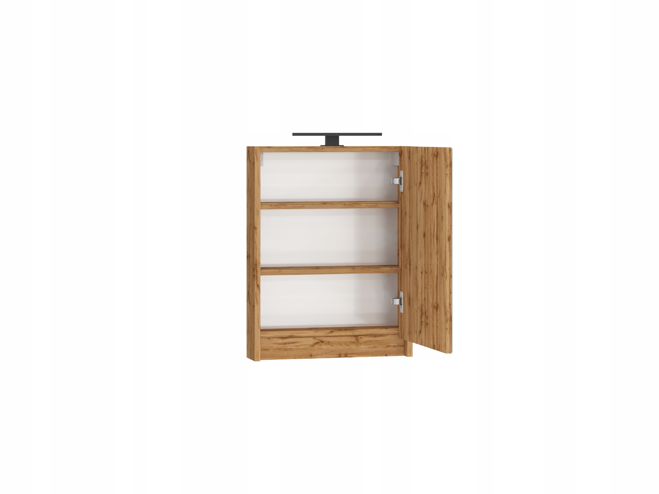 Дзеркальна шафа має одну дверцята з функцією плавного зачинення.Дзеркало, встановлене на передній частині дверцят, забезпечує комфорт під час повсякденного використання.