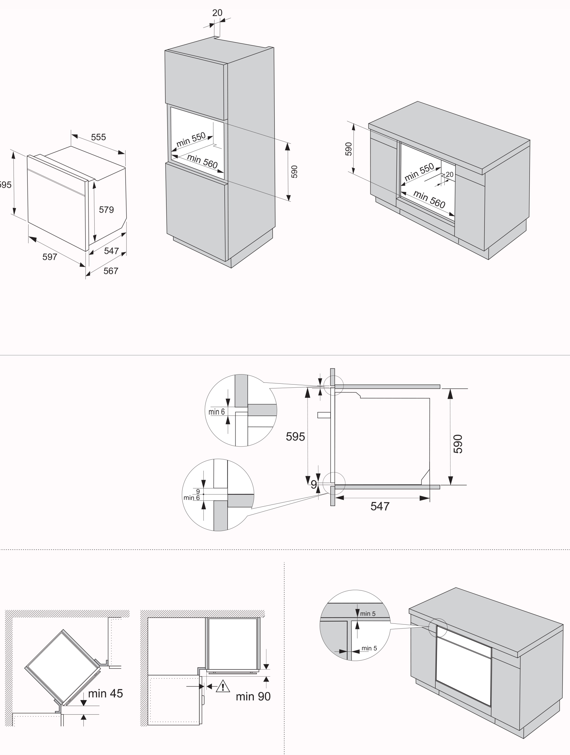 - Мінімальна ширина заглиблення для встановлення: 560 мм