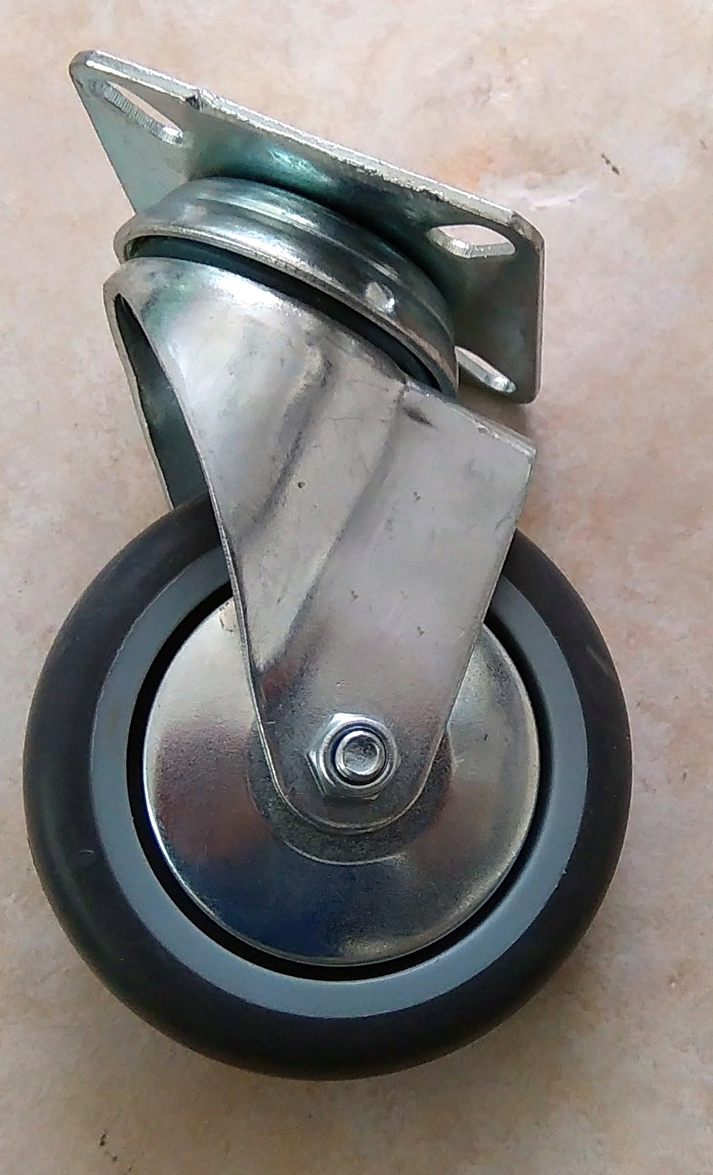 Пропоную Вашій увазі високоякісні диски американського виробництва. Колеса, встановлені на пластині, являють собою комбінацію апаратної вилки з оцинкованої сталі та поліпропіленового колеса з графітово-сірим протектором із термопластичної гуми, що не залишає слідів.Гальмо блокує колесо та головку.