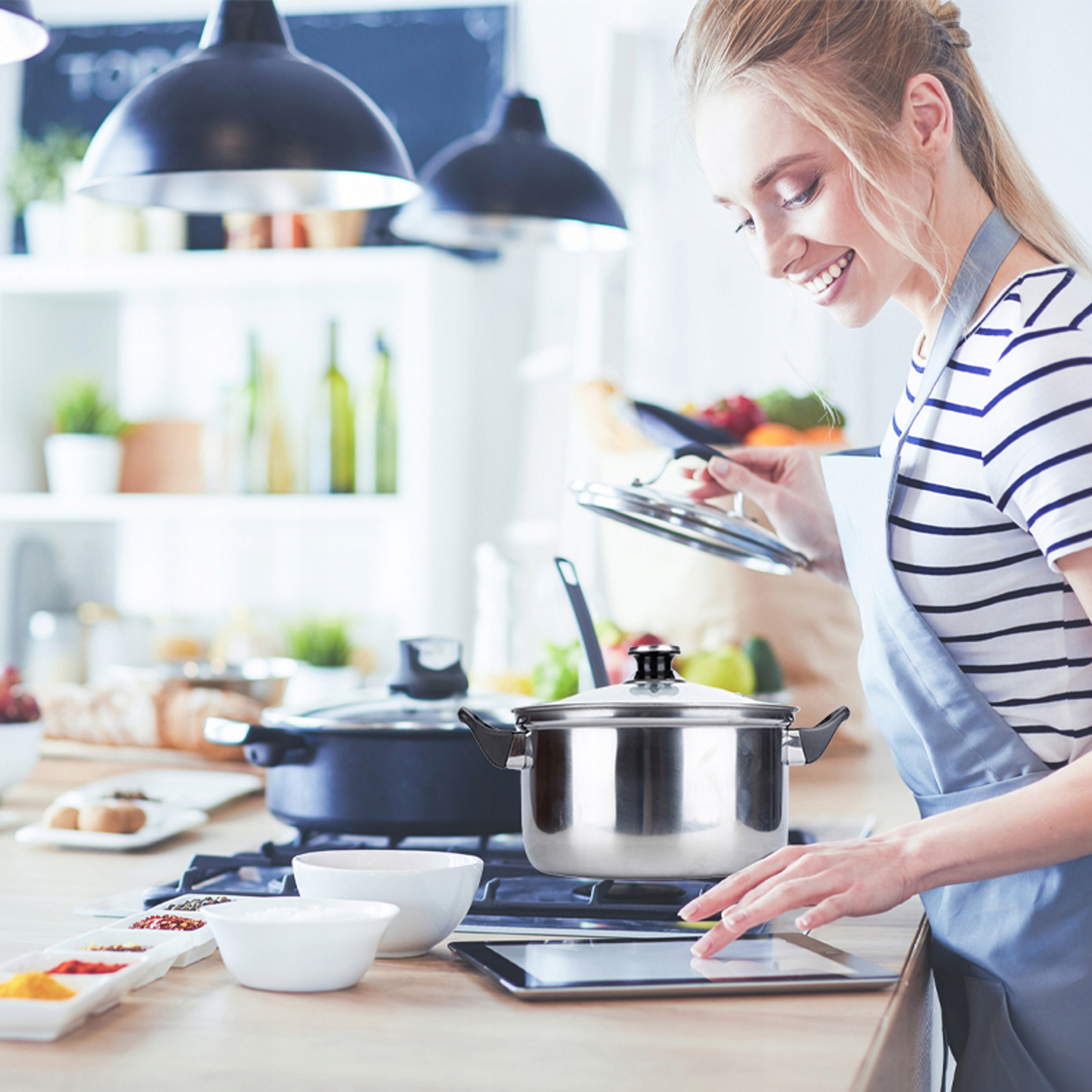 Набір посуду підходить для більшості видів плит, завдяки яким горщики є універсальними. Завдяки різній потужності горщика та додатковому судинному, як каструлю та сковороду, набір буде використовуватися для приготування їжі, смаження, а також страви. Горщики з нержавіючої сталі, завдяки їх твердій продуктивності, дуже легко чистити. Кухонний начиння можна легко очистити, оскільки вони підходять для миття в посудомийній машині.
