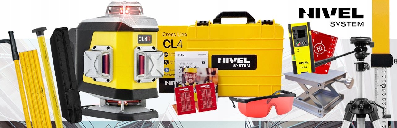 Nivel System CL4R — це багатоцільовий 4D-лазер для перехресного вимірювання. Обладнання встановлює на стіні ідеально рівні опорні лінії (горизонталь і вертикаль), які підтримують всі оздоблювальні та загальнобудівельні роботи. Лазер має 4 лазерні головки, завдяки яким користувач може працювати з чотирма лазерними площинами - в діапазоні 360° кожна. Відображення цих площин одночасно дозволяє визначити прямий кут. Ця опція корисна, серед іншого: в будівельних і оздоблювальних роботах (наприклад, плитка). Блокування компенсатора дозволяє нахиляти інструмент і використовувати похилі лінії. Вбудована різьба штатива дозволяє надійно та стабільно кріпити інструмент на штативі, адаптері або лазерній полиці. Посилені елементи корпусу лазера захищають від пошкоджень, спричинених ударами та ударами.