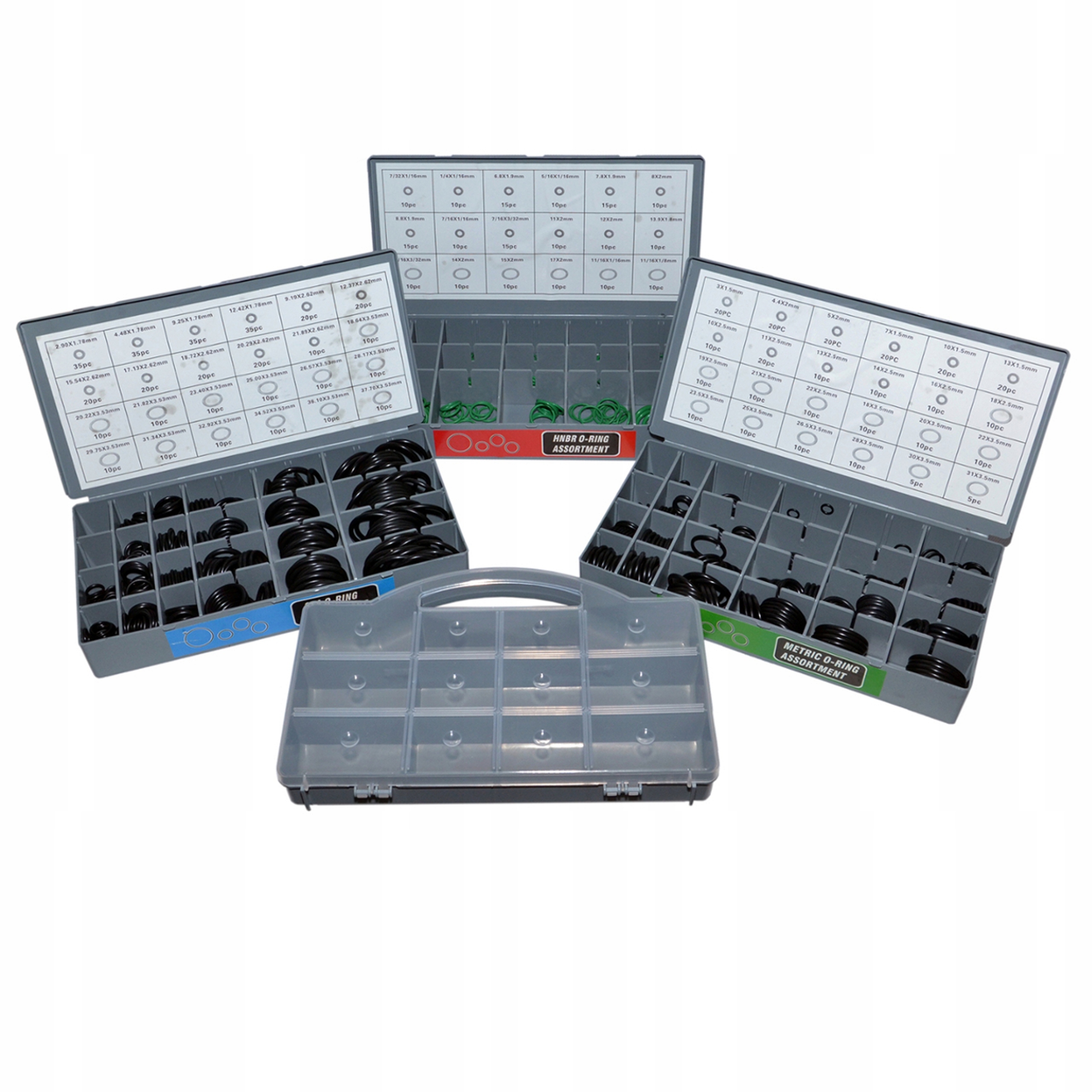 Високоякісні ущільнення. Набір 900 штук. Ущільнювачі для використання при гідравлічних роботах, необхідні для виконання різьбових з'єднань і ремонту автомобіля. Ущільнювальні кільця поміщаються в пластиковий сортувальник з відсіками - їх сортують за індивідуальними розмірами.
