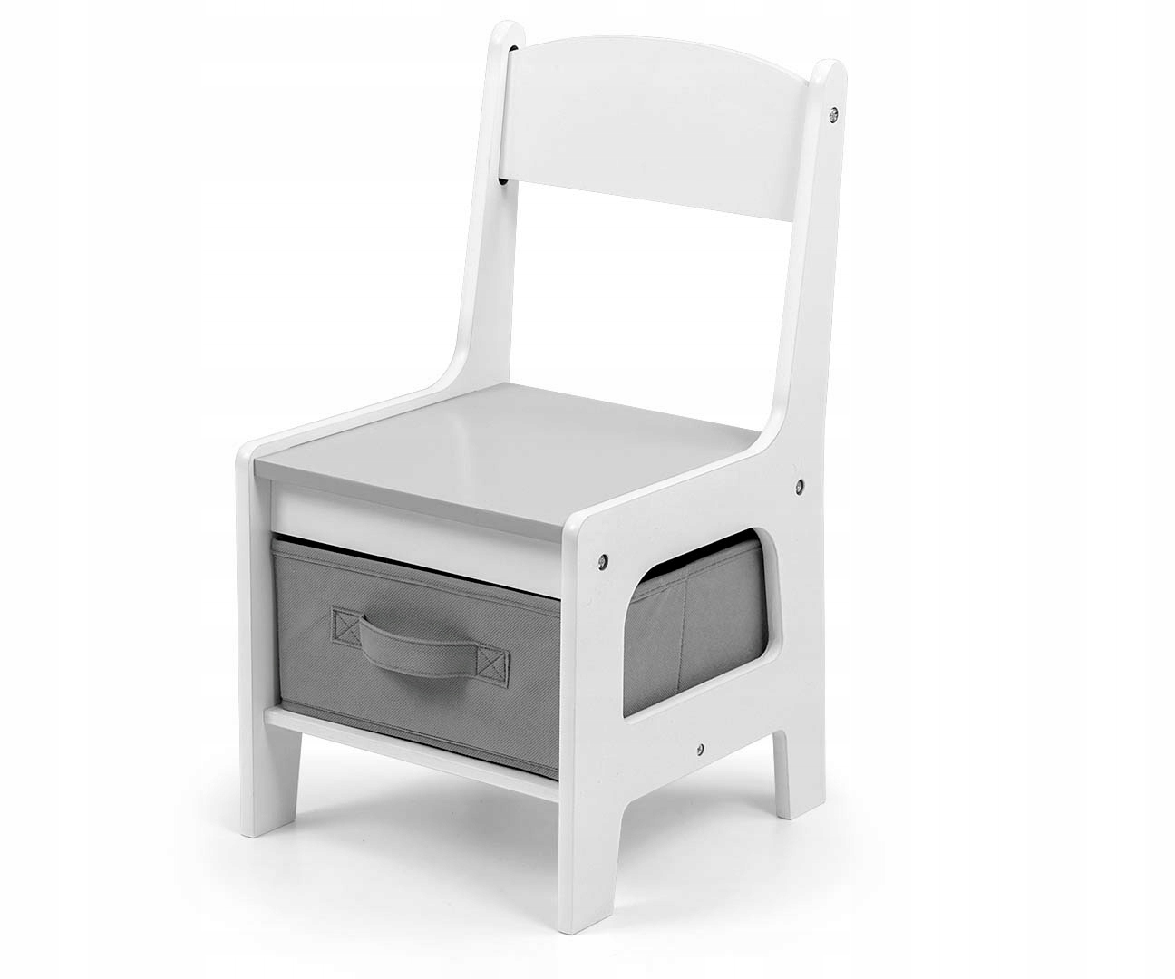 Набір багатофункціональних меблів для дітей. Стіл SVEN з двома стільцями в біло-сірому кольорі з сірими аксесуарами, зроблений для того, щоб забезпечити дітям: комфорт, простір для творчих ігор, малювання, письма та максимальний комфорт під час занять b >. У набір входять 2 стільці з 2 текстильними ящиками для зберігання, захованими на полиці під стільцями. Стіл оснащений величезним відділенням під двосторонньою знімною стільницею. Також є бічні полиці для зберігання. Одна сторона стільниці - це велика дошка для малювання. Стільці легкі, діти можуть їх вільно пересувати. Меблі виготовлені з винятковою точністю та дбайливістю. Обидва крісла мають закруглені кути для захисту дитини від травм. Всі елементи конструкції столу і стільців забезпечують високу стійкість і мінімізують ризик падіння. Гарнітур Sven виготовлений з МДФ, міцний і простий у догляді. Меблевий гарнітур легко збирається, всі необхідні для складання елементи є в комплекті.