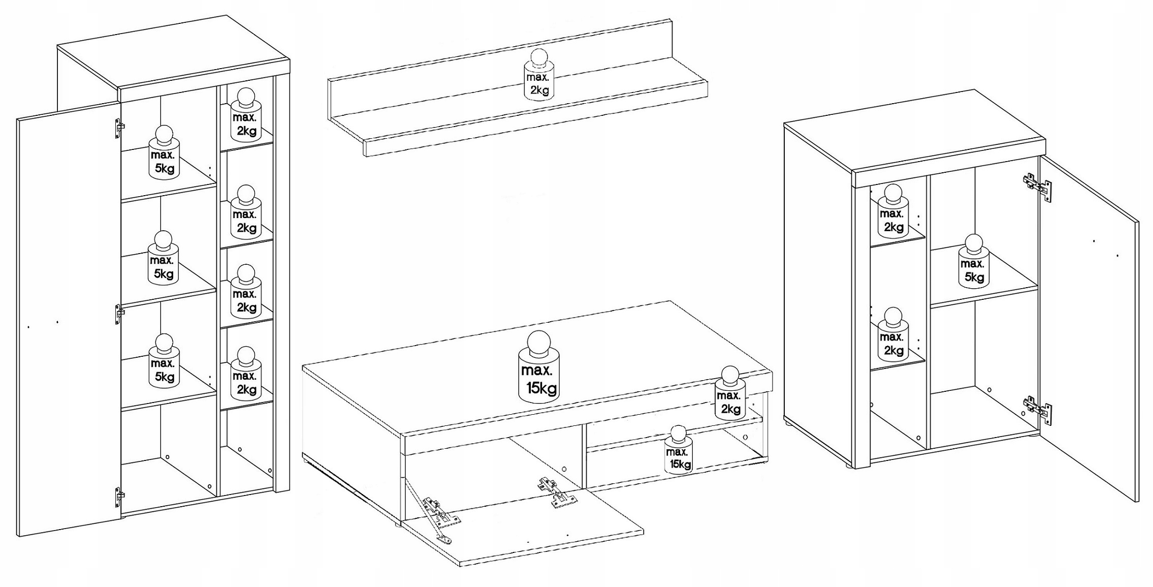 ▶ ️1x настінний блок (веб -сайт Wysoka/шафа RTV/підвісна полиця/низький веб -сайт)