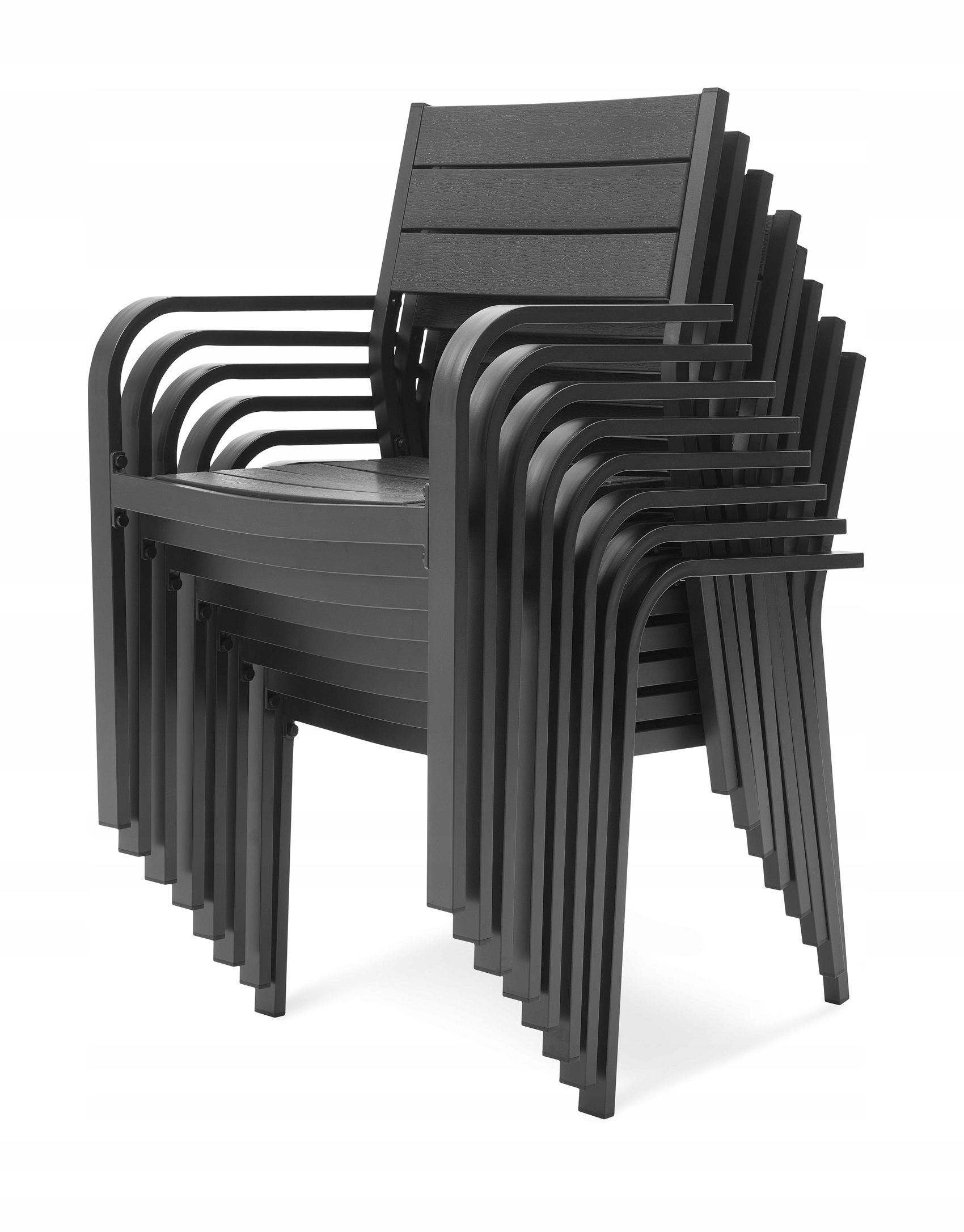 Стіл виготовлений з високоякісного алюмінію з порошковим покриттям. Стільниця в пропонованому наборі виготовлена з композитних плит WPC, які не вбирають воду.