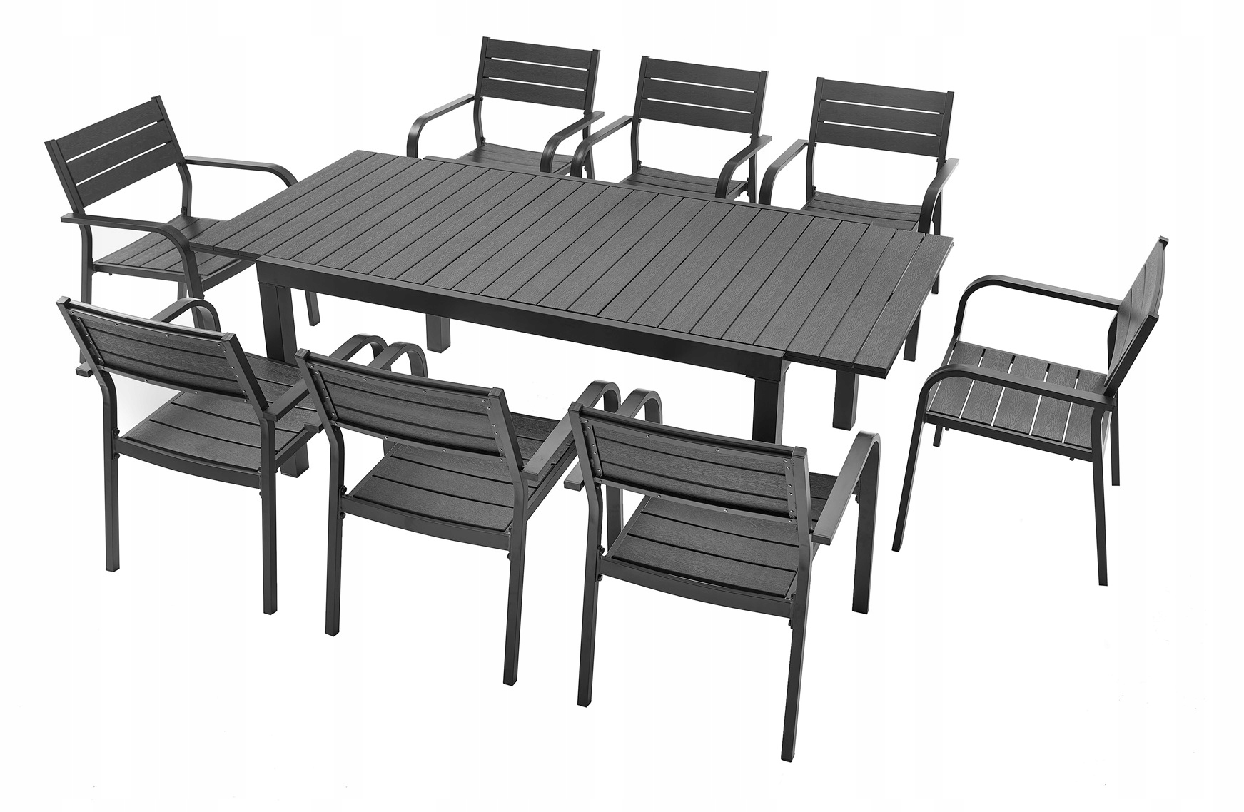 Нам вдалося створити ідеальний гарнітур на вулиці, щоб ви могли насолоджуватися найкращими сонячними днями прямо зі свого саду чи тераси. . Набір з прямокутного висувного столу (156-200 см) і 8 садових стільців перетворить ваш простір, надаючи індивідуальний і оригінальний штрих.