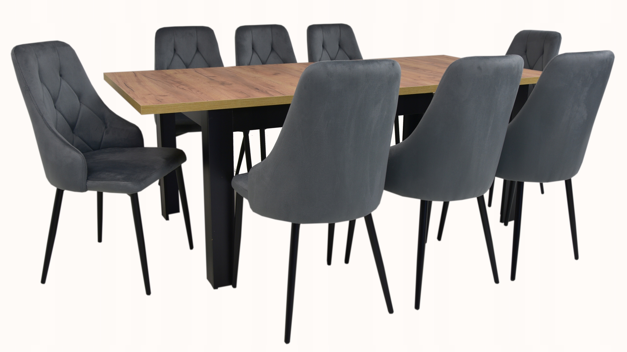 (1 x C-14 чорна / реміснича дубова стільниця, 8 x IK09 сіра стьобана)