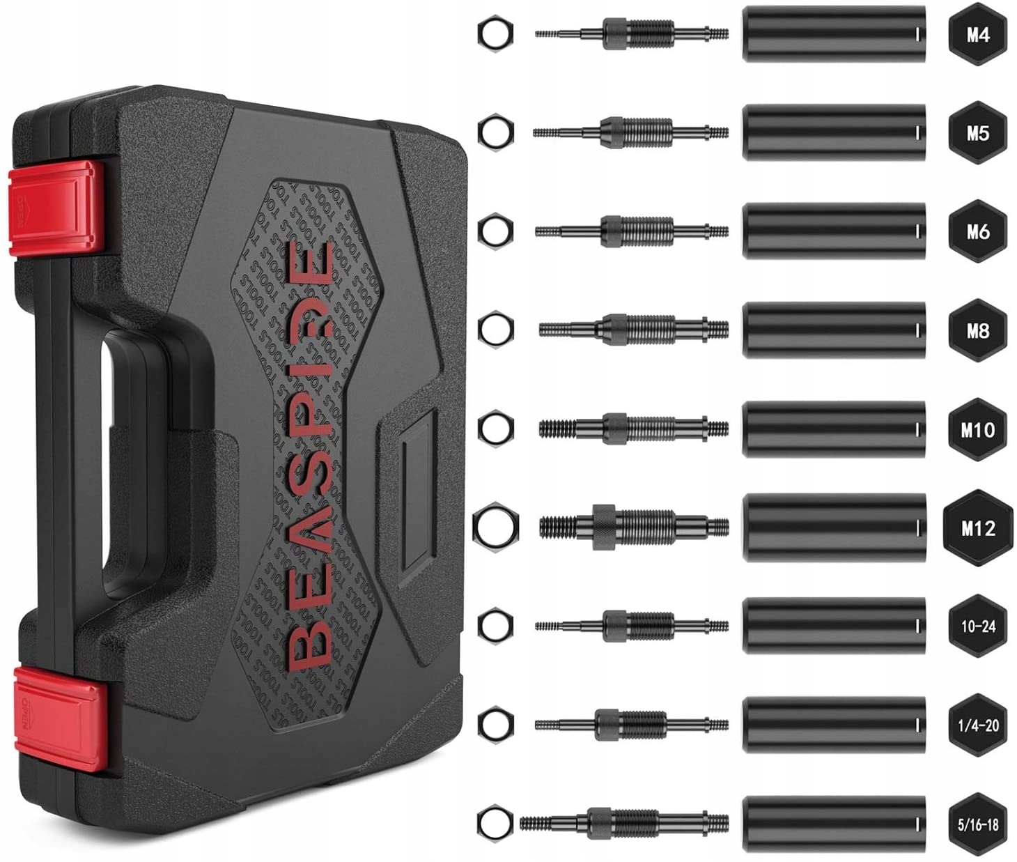 - 【Що ми можемо вам надати】 9 x Набір шипів для заклепок і гайок (включаючи M4, M5, M6, M8, M10, M12). , 10-24, 1/4-20, 5/16-18), 9 x Спеціальний контейнер Thorn, 1 x Beaspire Portable Toolbox.