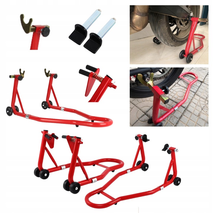 Універсальна дві стійки, передня і задня, з 3 наконечниками, що дозволяє піднімати мотоцикл спереду і ззаду.