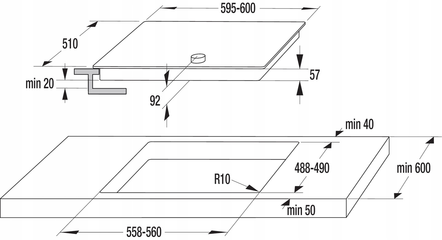 - Мінімальна ширина монтажної ніші: 558 мм