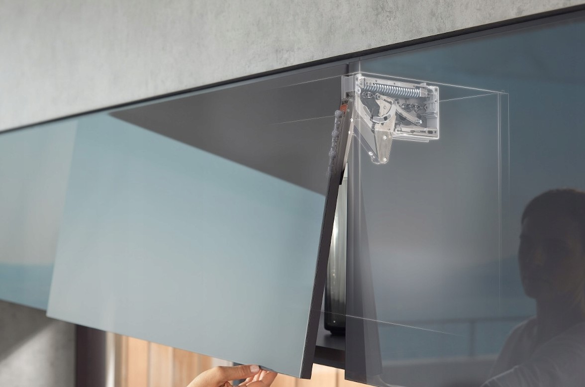 AVENTOS HK top subtly – ідеальне рішення для низьких верхніх шаф, напр. над кухонною шафою або холодильником. Його мінімалістичний дизайн уже неодноразово був нагороджений.