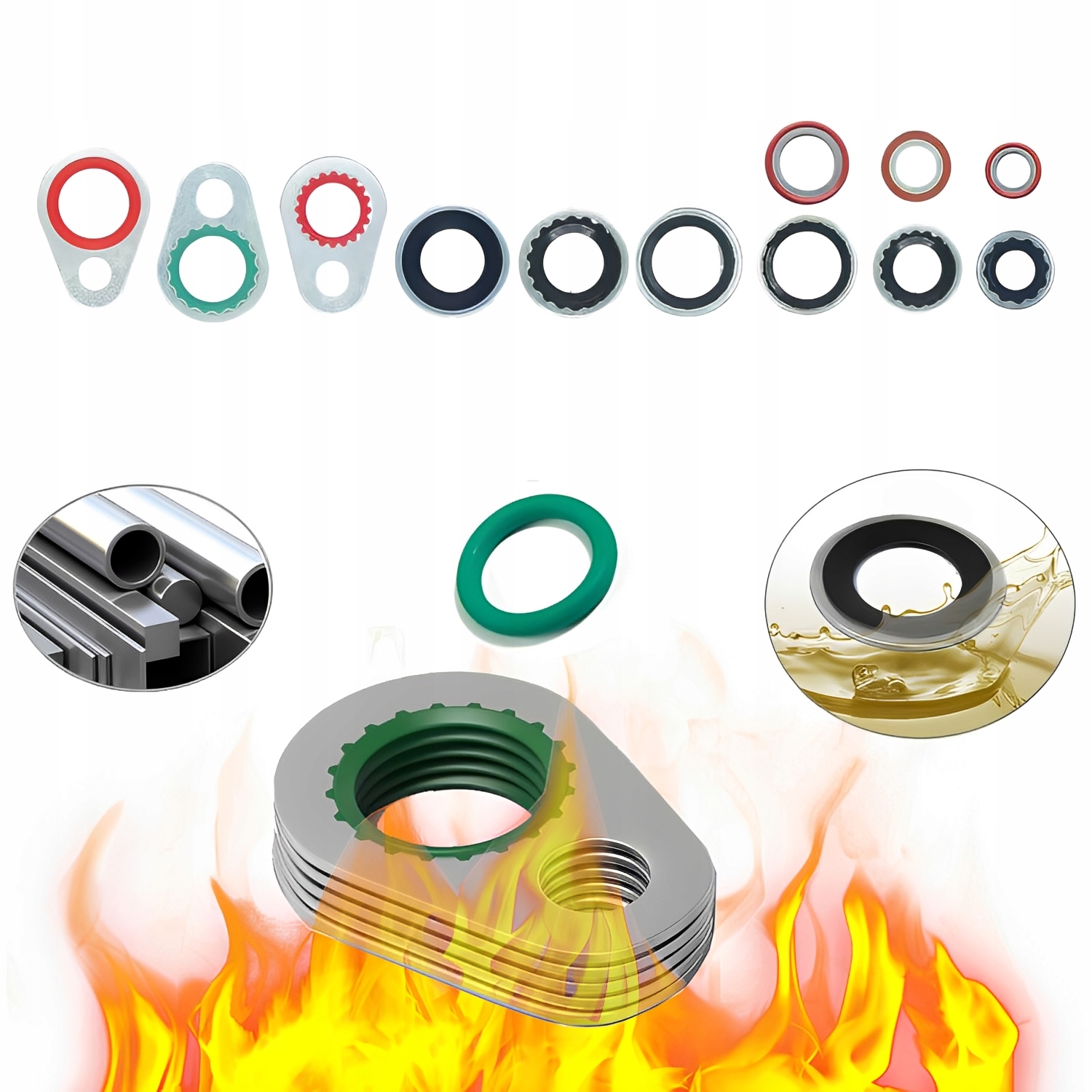 ✅【ВИСОКА ЯКІСТЬ】Прокладка компресора кондиціонера з високоякісного потовщеного металевого кільця та гумової прокладки, гладка поверхня без задирок.