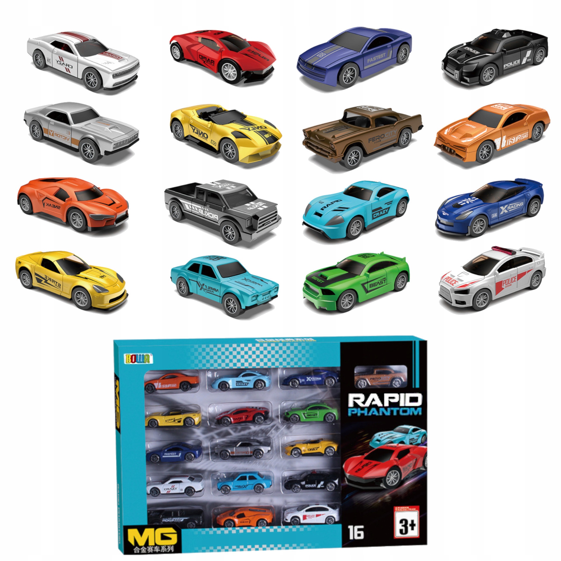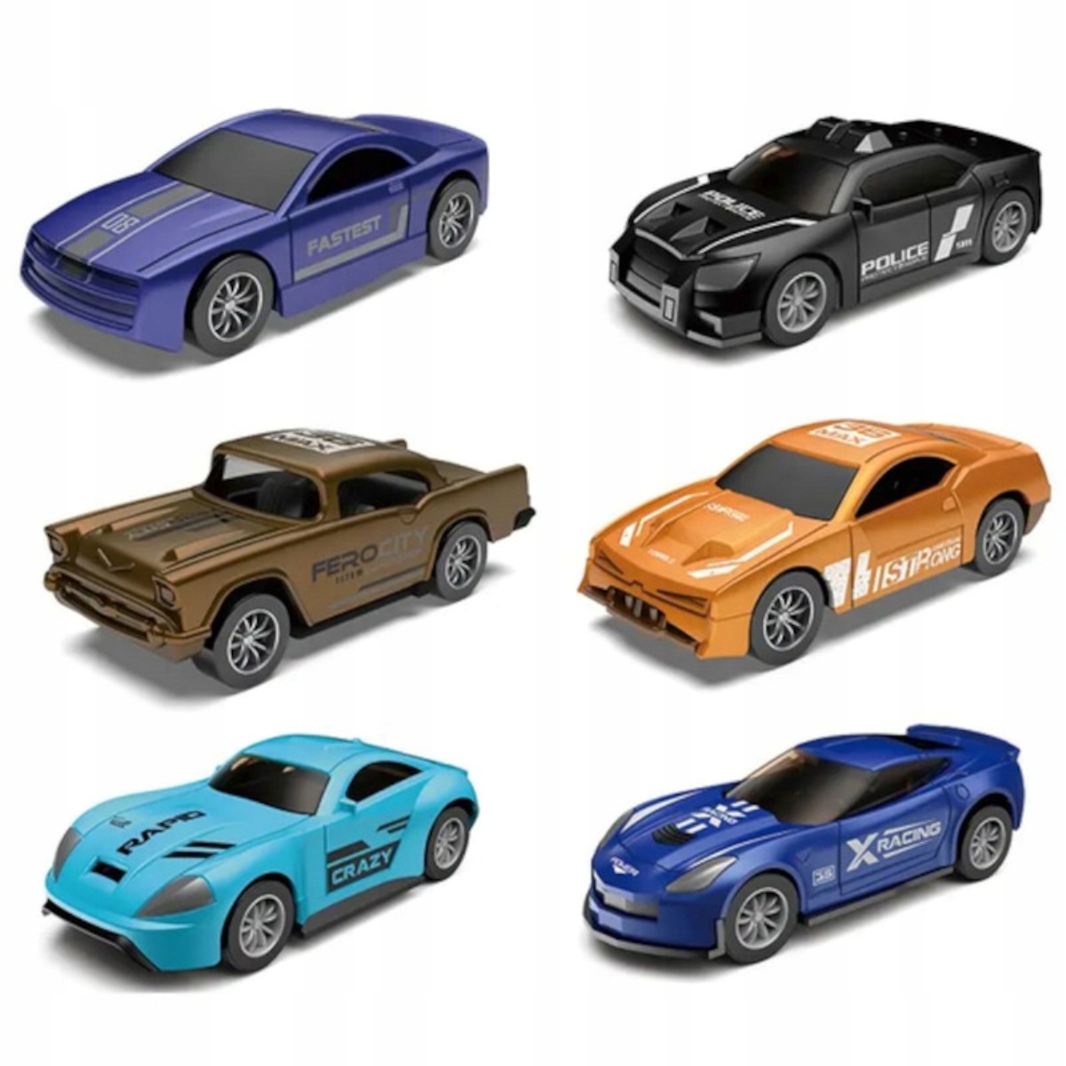 Кожен автомобіль із набору відрізняється та унікальний b>, ви знайдете поліцейські автомобілі, гоночні автомобілі, легкові автомобілі та класику. Кількість автомобілів забезпечує фантастичне задоволення протягом тривалого часу наодинці або в компанії друзів, а також дозволяє влаштовувати захоплюючі гонки. Безмежна фантазія дитини підкаже, якими будуть розваги цього дня.