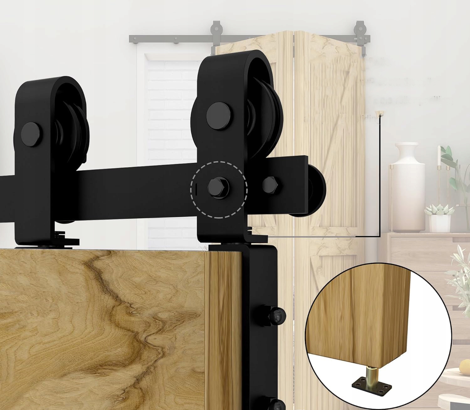 У набір входить система регульованих коліс, яка підходить для дверних панелей товщиною від 3 см до 4,5 см. Нейлонові колеса не залишають слідів на доріжці, що захищає її поверхню, а бічні підшипники коліс забезпечують плавний і тихий хід. Встановлення системи надзвичайно просте завдяки доданим інструкціям зі складання, які крок за кроком допоможуть вам пройти всі етапи. З нашим набором Ви точно зможете насолодитися новим виглядом Вашого інтер'єру за короткий час.