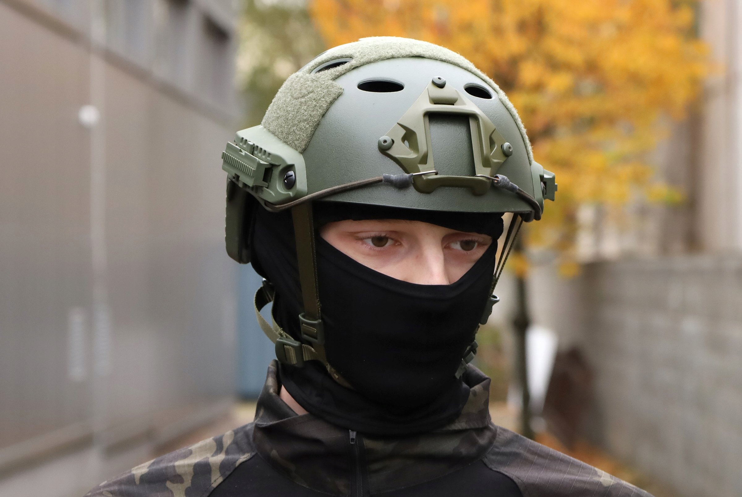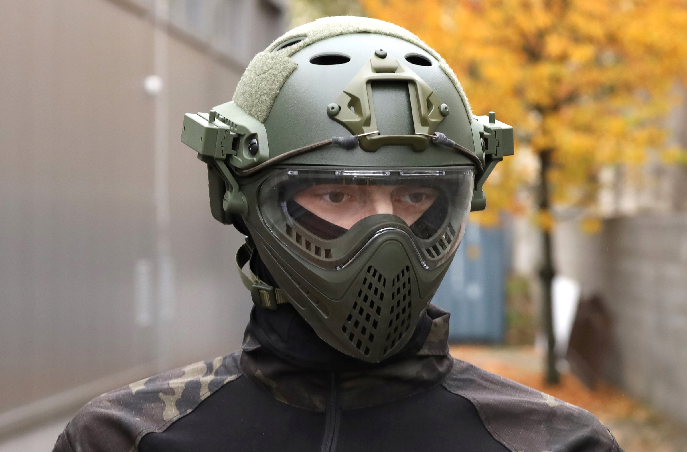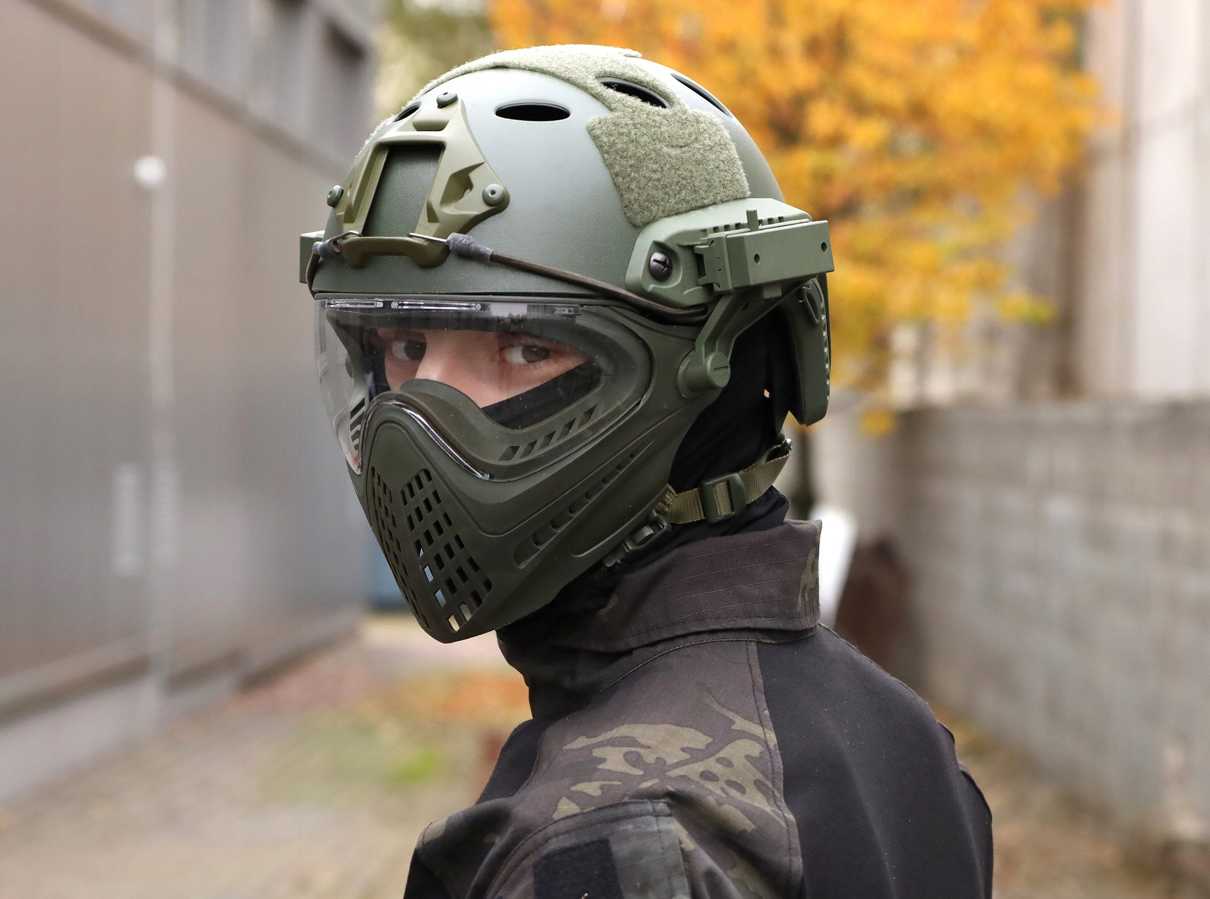 Ця інновація від Guerilla Tactical розроблялася кілька років, особливо система кріплення шолома FAST. Маску можна зняти з шолома в будь-який момент. Завдяки системі кріплення ви також можете регулювати відстань маски від обличчя.