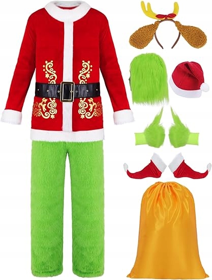 КОМПЛЕКТ СУКНІ З 7 ЧАСТИН КОСТЮМ ГРІНЧА КОСПЛЕЙ 3XL РІЗДВО XXXL
