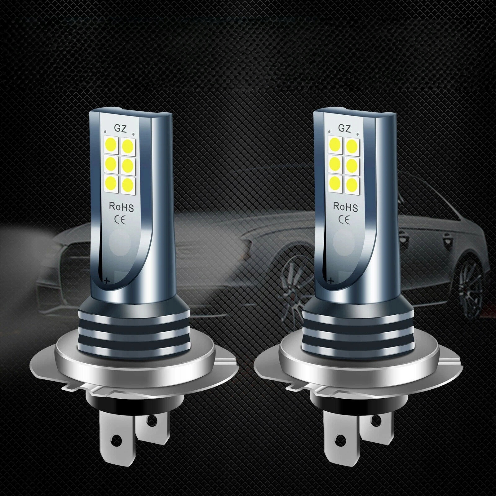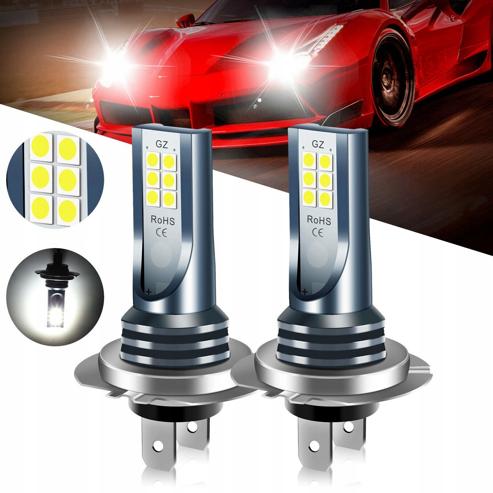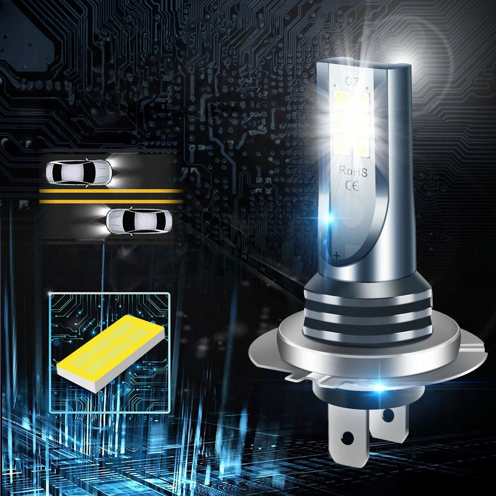 КОМПЛЕКТ СВІТЛОДІОДНИХ ЛАМП H7 6000K ЛАМПОЧКИ 1 ДО 1 БІЛЬШЕ