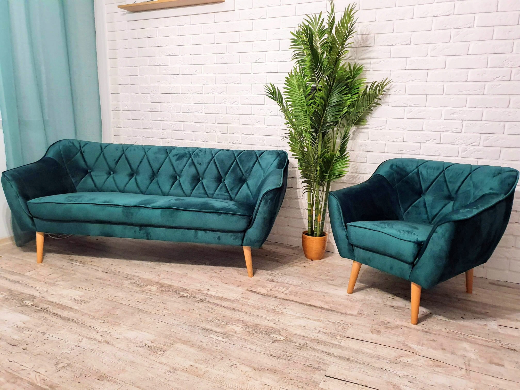 СУДОВИЙ ДИВАН 3 + 2 +1 ЗЕЛЕНИЙ З ЧОРНИМИ ДЕРЕВ'ЯНИМИ НІЖКАМИ СТЕБАНИЙ ВЗІЗУНОК СПИНКА СПИНКА КАРО ГУДКІ
