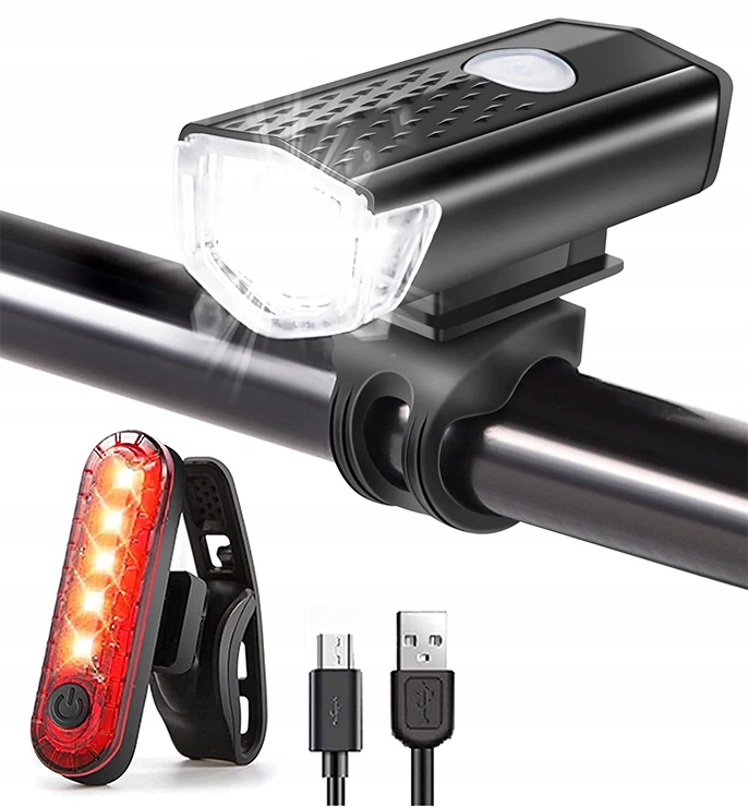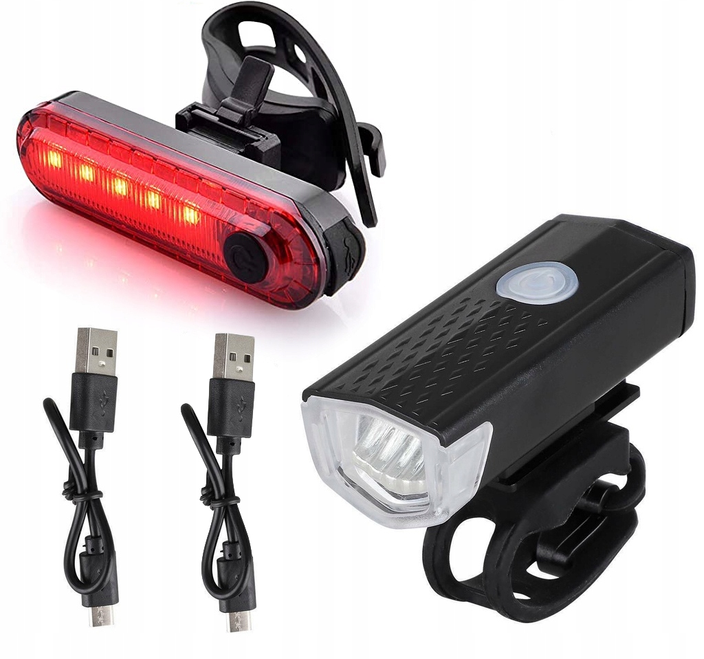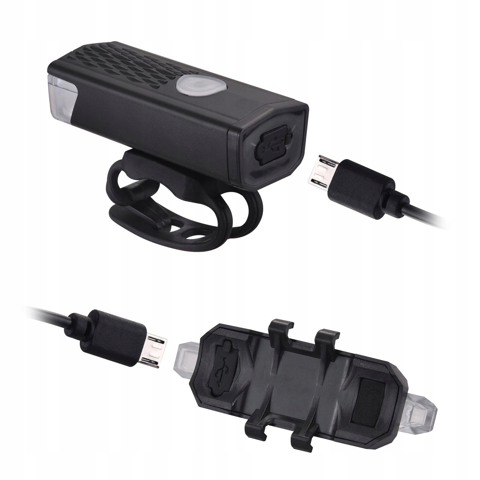 Набір ламп, який забезпечить Вашу безпеку під час велосипедної подорожі. Набір готовий до складання - додаткові інструменти не потрібні. Універсальний дизайн робить фари ідеальними для будь-якого типу велосипеда. Спеціальна конструкція світловідбивача запобігає засліпленню інших водіїв. Задній ліхтар забезпечує відмінну видимість велосипедиста. Лампи живляться від батарейок, заряджаються через USB-кабель, що входить в комплект.