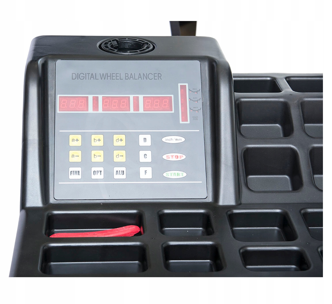 Балансир має чітку панель керування зі світлодіодними дисплеями. Пристрій автоматично повідомить вам про розбалансування колеса - має позиціонер дисбалансу у вигляді електромеханічного гальма, звуковий сигнал і діоди на дисплеї.