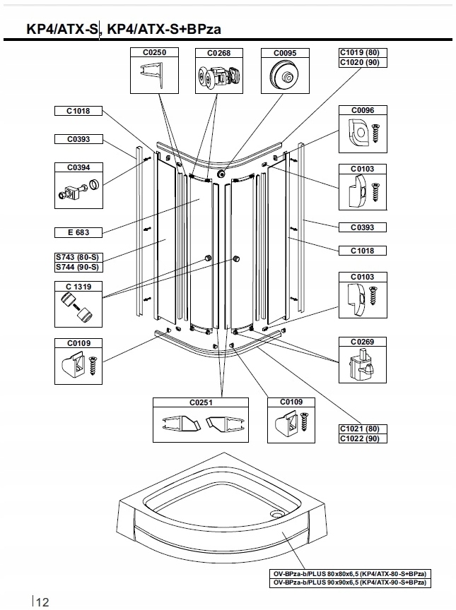 Повний візок для кабін KP4/ATX, KP4/ATB, KP4/CG Sanplast 660-C0268