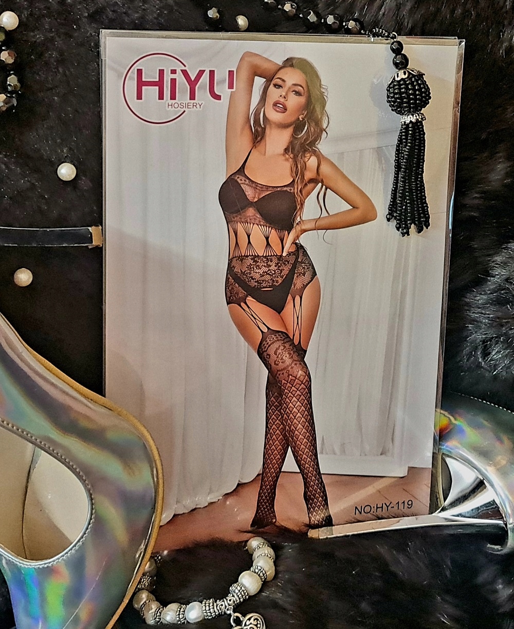 KOMPLET BIELIZNA EROTYCZNA BODYSTOCKING SEXY BODY I POŃCZOCHY UWODZICIELSKA