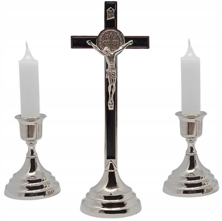 KOMPLET KOLĘDOWY KRZYŻ 20CM CZARNY PASEK ŚWIECZNIKI ŚW. BENEDYKT KOLĘDA #47