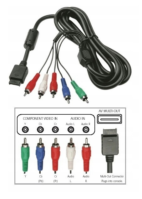 Увага! Перш ніж підключати компонентний кабель до консолі PS2, необхідно спочатку налаштувати підключену консоль за допомогою звичайного кабелю на компонентний сигнал YPRV у параметрах консолі. Після цієї зміни вам потрібно підключити компонентний кабель до PS2!