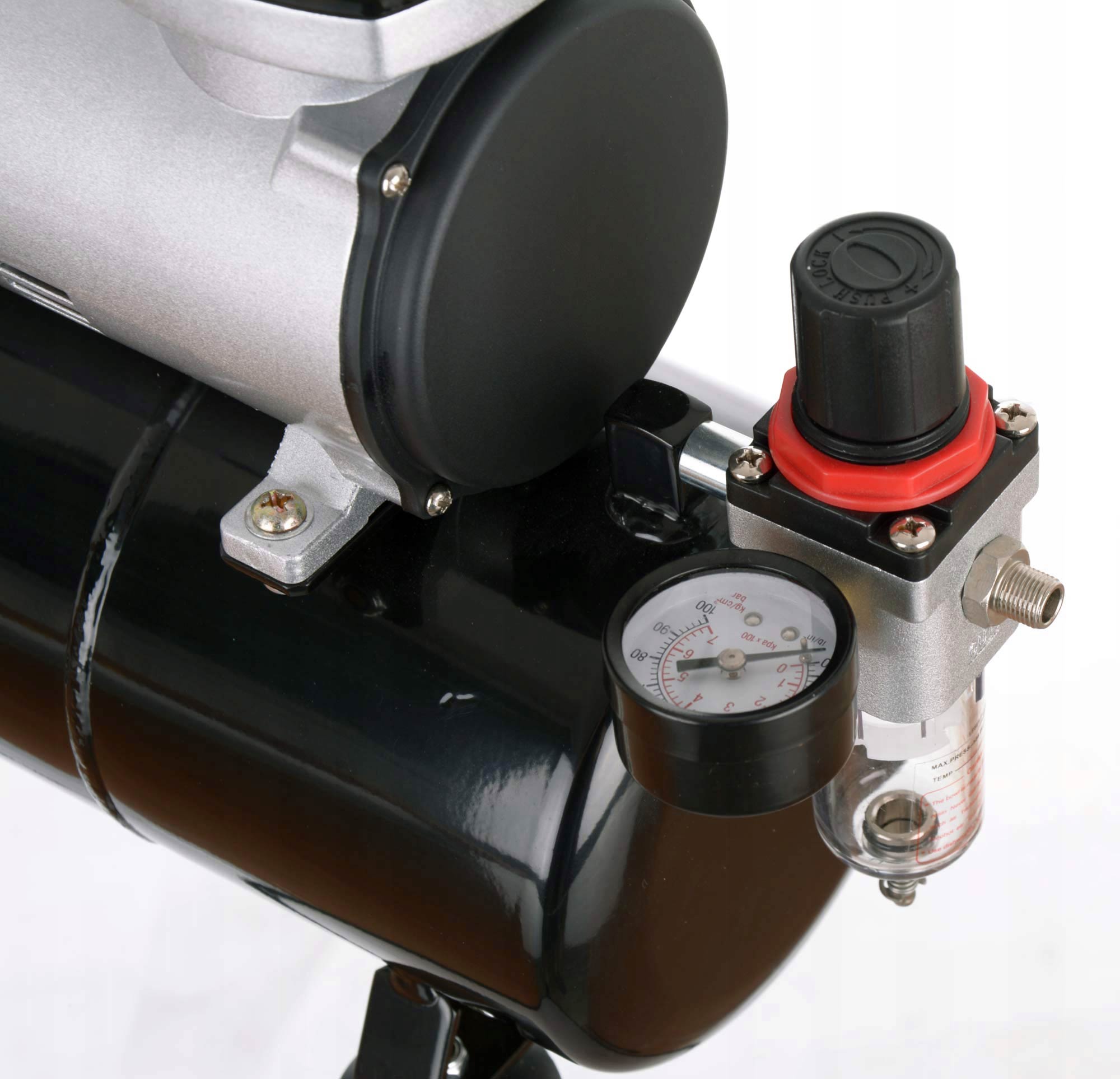 Професійний безмасляний поршневий компресор для всіх типів аерографів, термовимикач і циліндр, що стабілізує пульсацію на виході повітря. Використовується в салонах краси, татуюванні, найчастіше в моделюванні та невеликих малярних роботах.