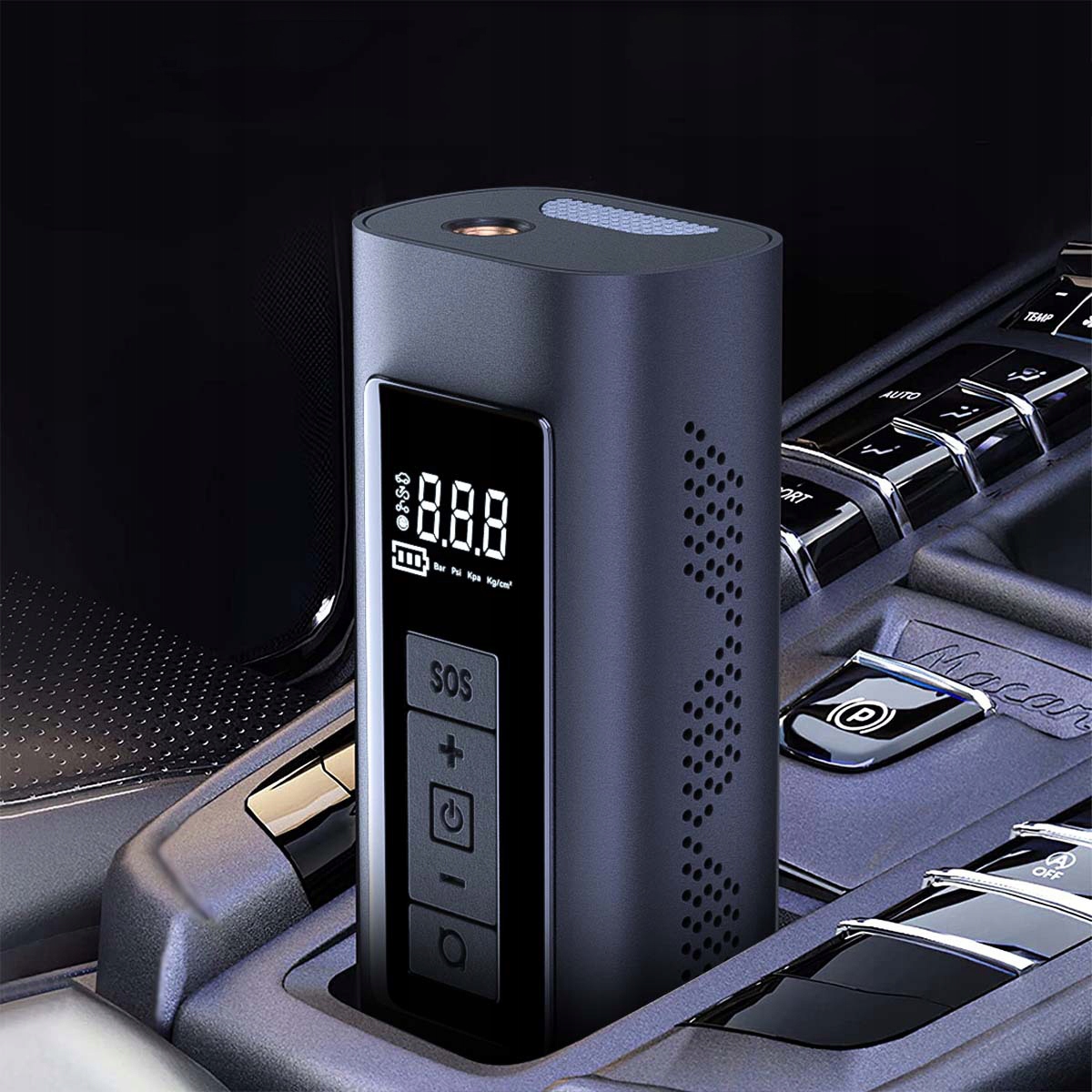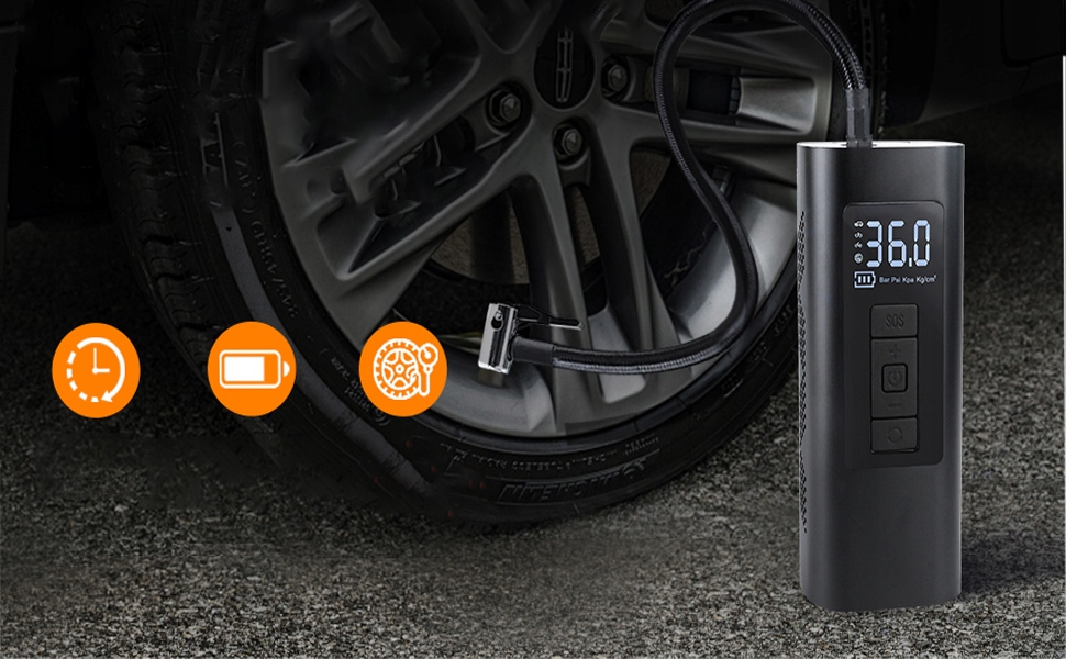- Цей цифровий насос для накачування шин з повітряним компресором оснащений яскравим РК-екраном, тому ви можете легко ним користуватися навіть у темряві. Цей бездротовий насос для накачування шин також оснащений функціями SOS та освітленням, щоб допомогти вам у надзвичайних ситуаціях