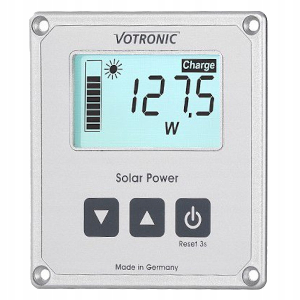 Чітке розташування вимірюваних значень на дисплеї та просте керування одним натисканням кнопки забезпечують кращий контроль та використання сонячної системи. Дисплей оснащений фоновим підсвічуванням (перемикається). Тому читабельність значень дуже добра навіть на великих відстанях і за будь-яких умов освітлення.