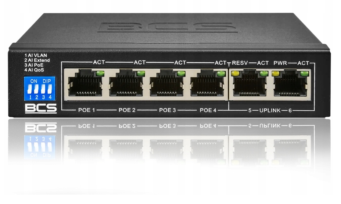 - AI EXTEND, порти 1- 4 підтримують передачу до 250 метрів (cat 5e, cat 6)