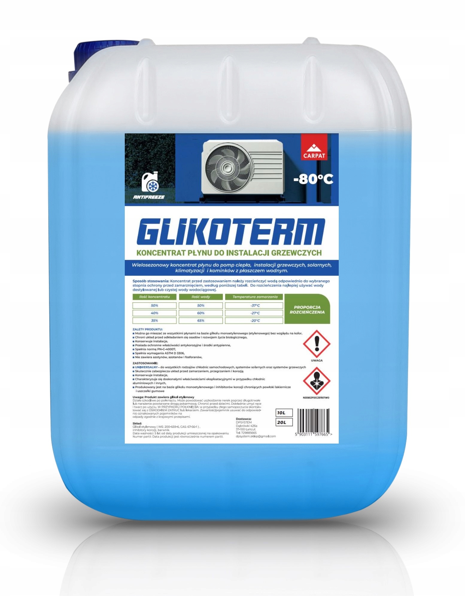 З 10 літрів концентрату отримаємо 20 літрів готової рідини із заморожуванням. температура -37°C