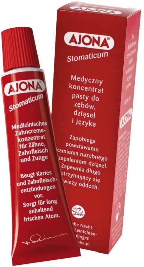 Ajona stomaticum, що виробляється згідно з рецептом 70 -річного рецепту, не змінив своєї форми, форми та ефективності терапевтичної дії, підтвердженої багатьма роками досліджень.