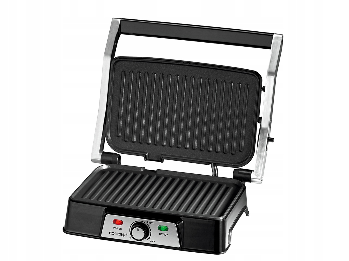 Концепція Panini GE2005 Контактний гриль з силою 1500 Вт - універсальний півзахисник, який полегшує роботу на кухні. Він пропонує можливість грилю на барбекю на відкритих плитах і оснащений контролером температури.