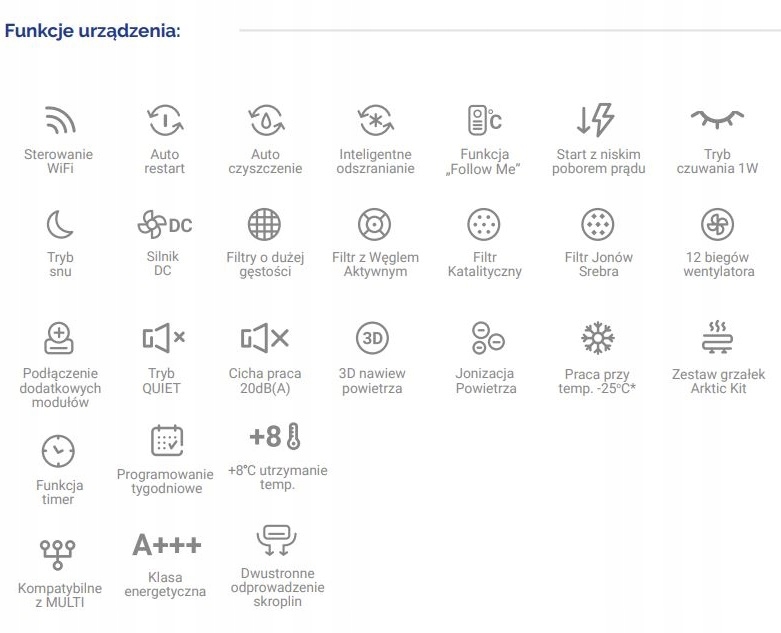 Найвища серія кондиціонерів - це поєднання сучасного зовнішнього вигляду з найсучасніші функції кондиціонера. Іонізація повітря, набір нагрівачів і плавна робота навіть при -25°C створюють пристрій з найвищою якістю роботи в будь-яких умовах на основі останніх рішень на ринку кондиціонування.